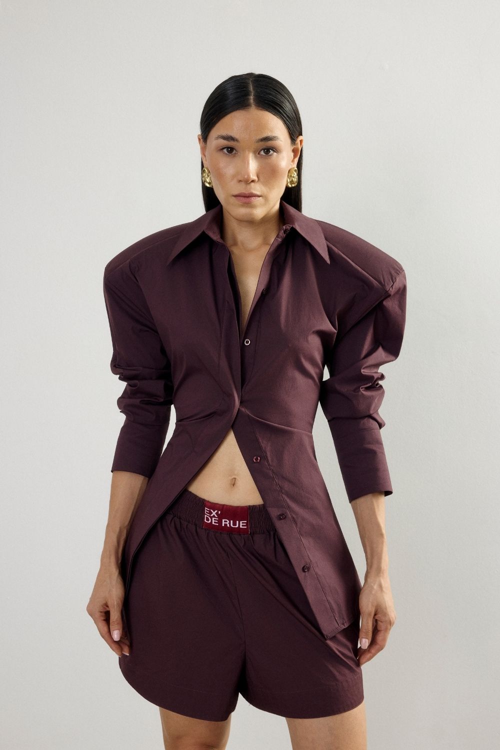 Padded Pleated Bordoeux Shirt