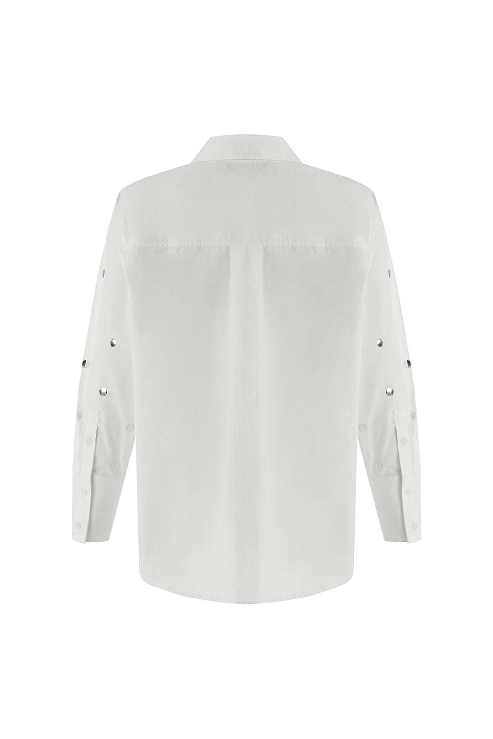 Metal Pullu Düğmeli Uzun Kol Oversize Ekru Gömlek
