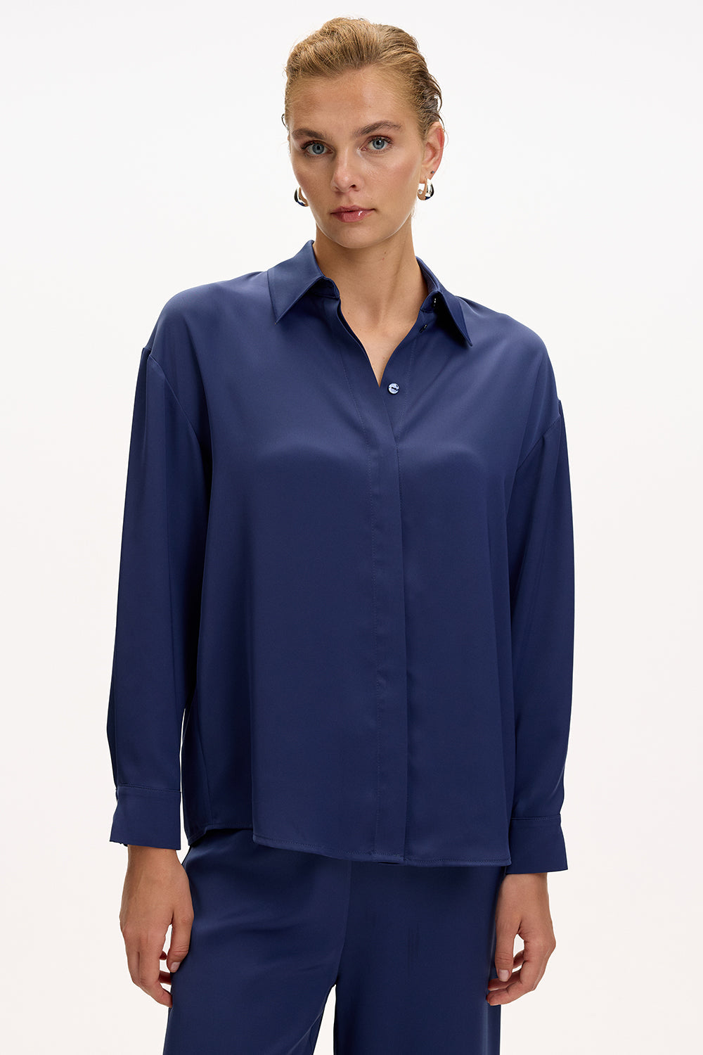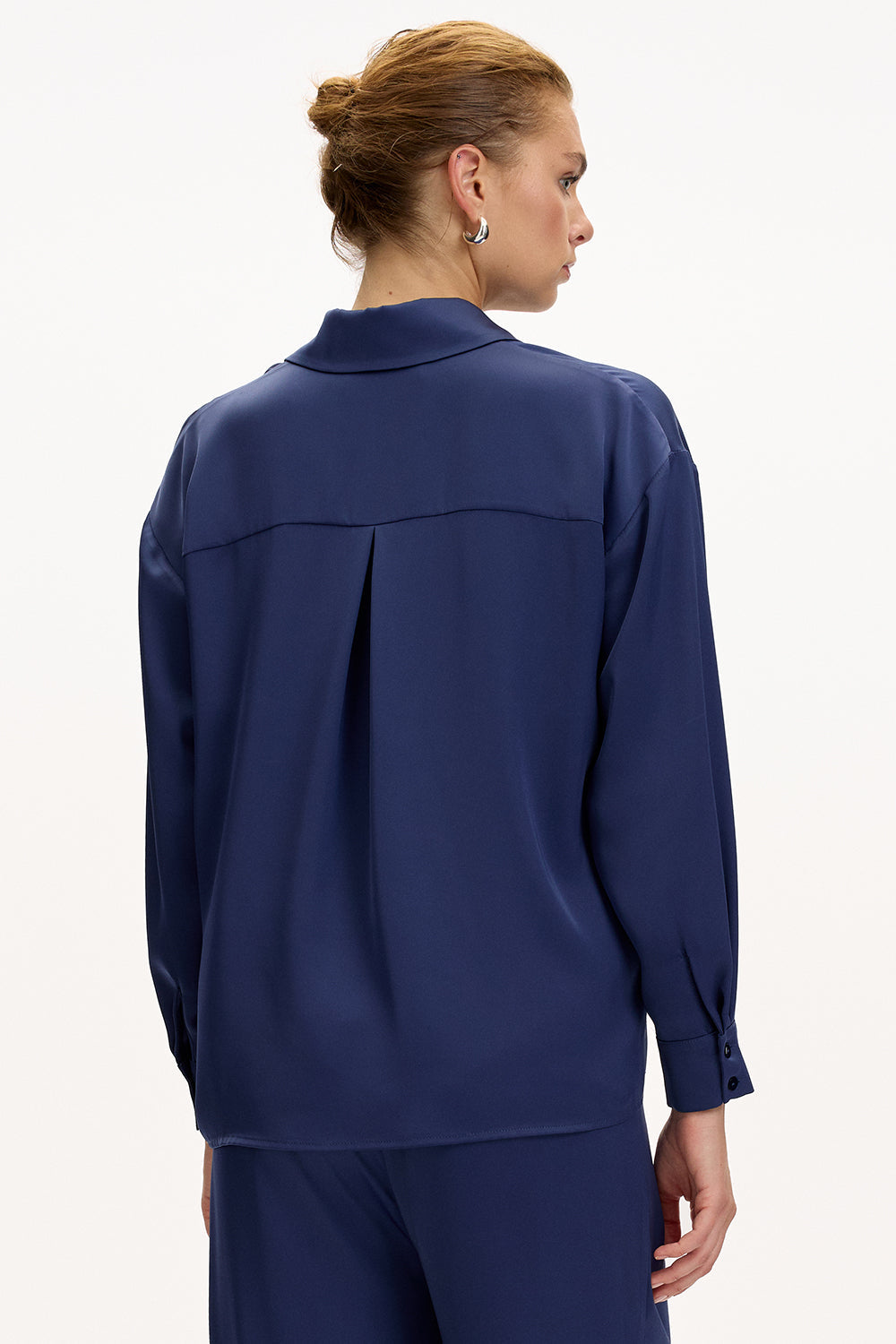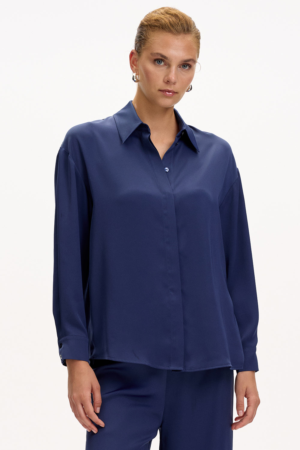 Uzun Kollu Klasik Yaka Düğmeli Regular Lacivert Gömlek