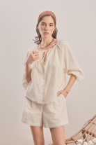 Gömleğin yaka ve etek ucunda nakışlı kenar süslemeleri.