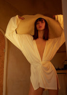 - Gömleğin bel kısmındaki bağcıklarını sıkarak veya gevşeterek istediğiniz uyumu ayarlayabilirsiniz. Bu özellik, giyen kişiye daha fazla rahatlık ve esneklik sağlar.