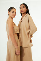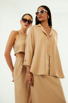 Aynı ürünün pantolonu, eteği ve crop top takımı vardır.