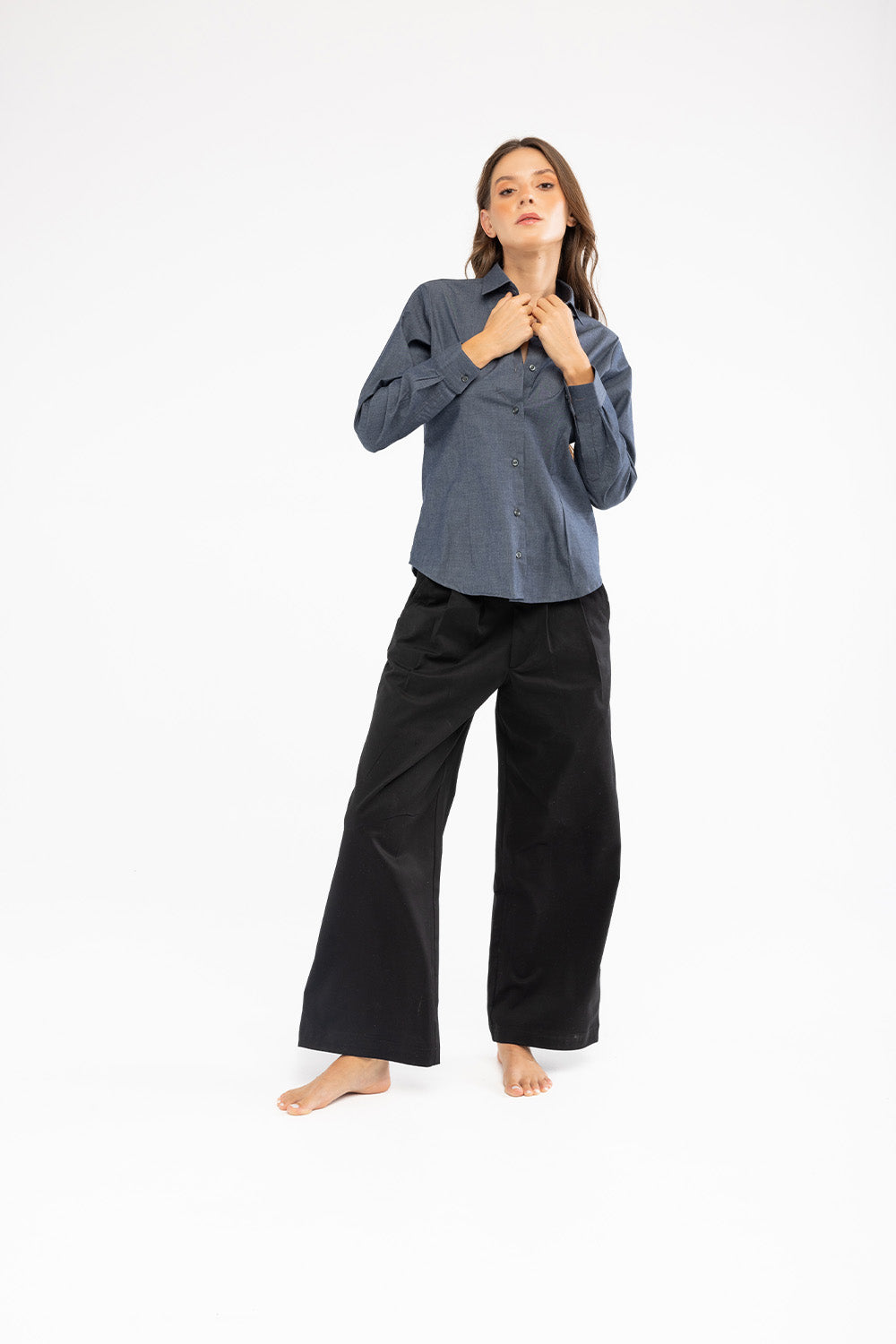 Pamuk Slim Fit Kadın İndigo Gömlek
