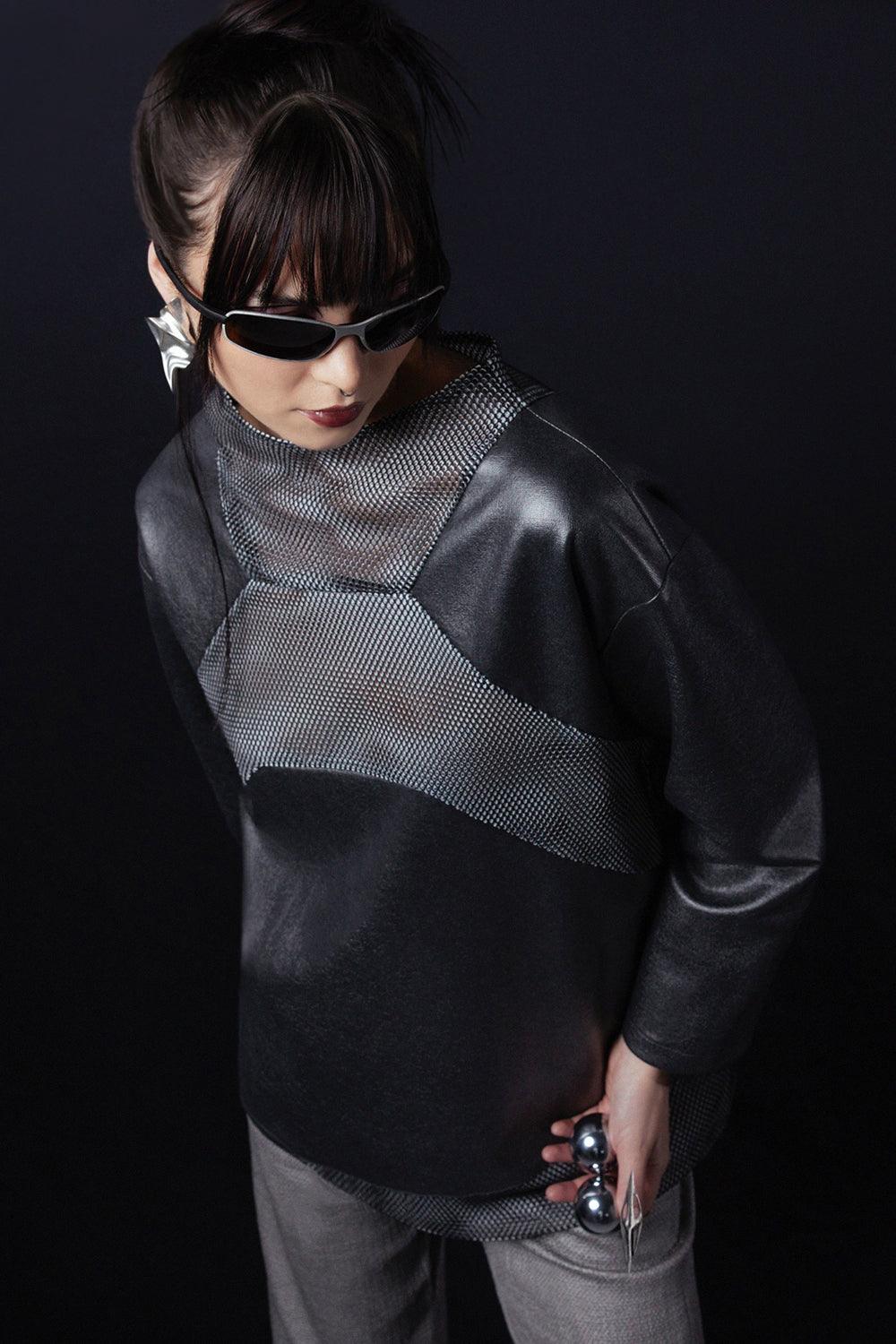 File detaylı oversize metalik kazak.