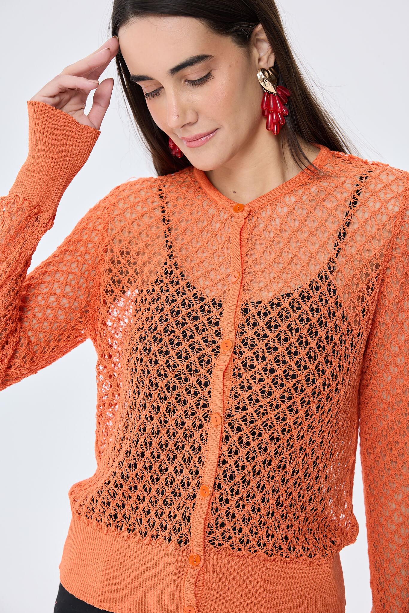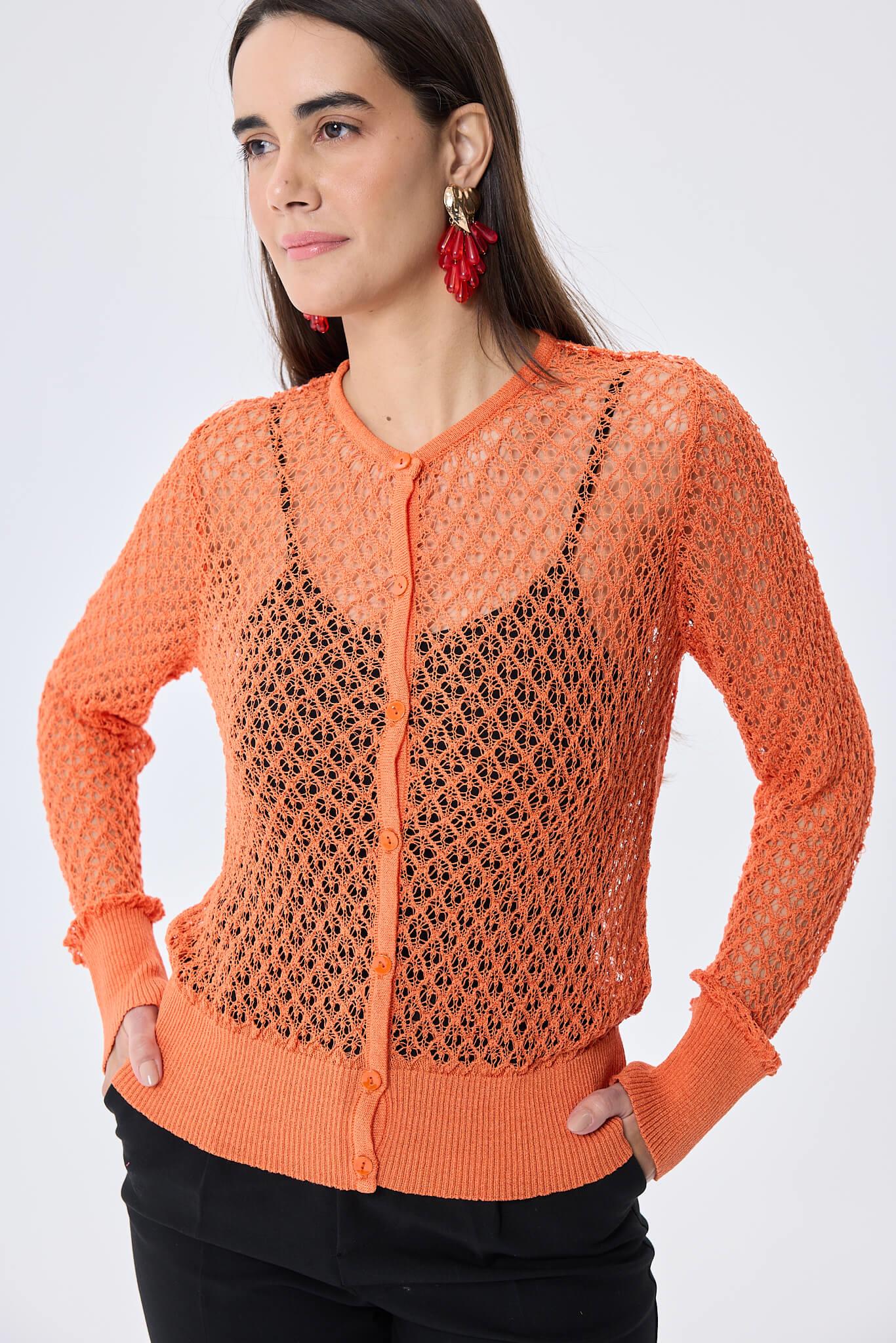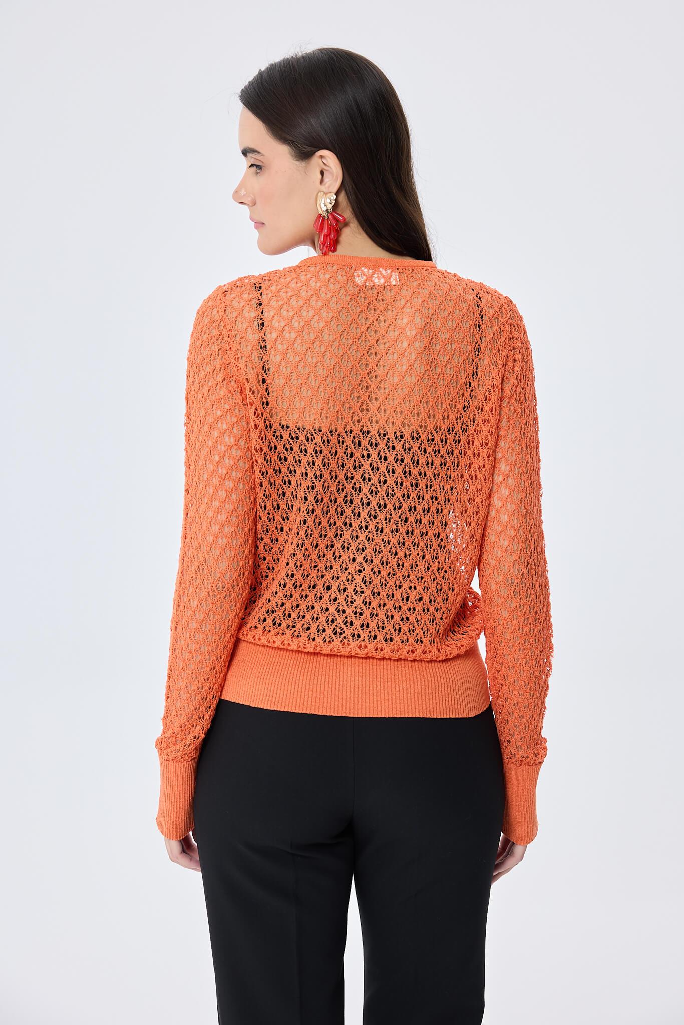 Addison Ajur Örgülü Kadın Triko Hırka Turuncu