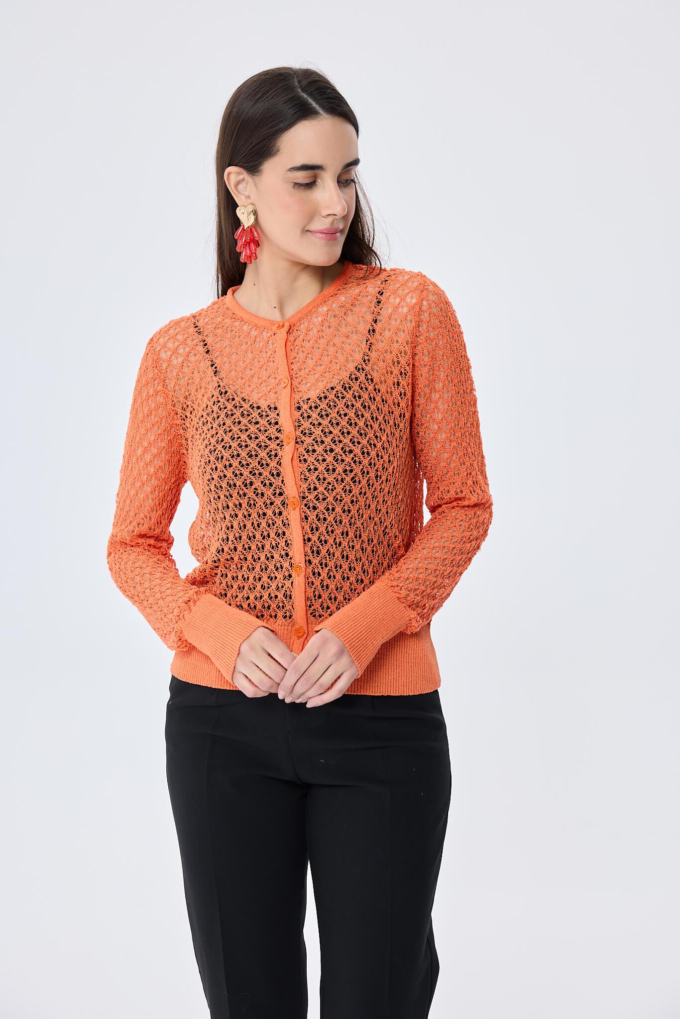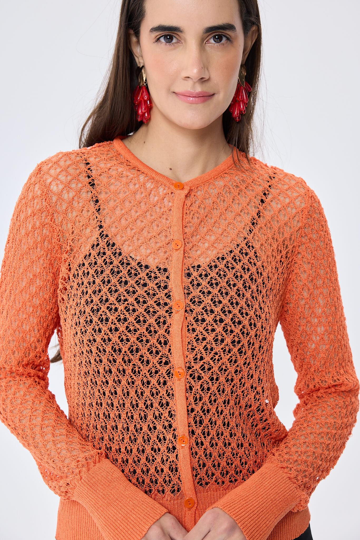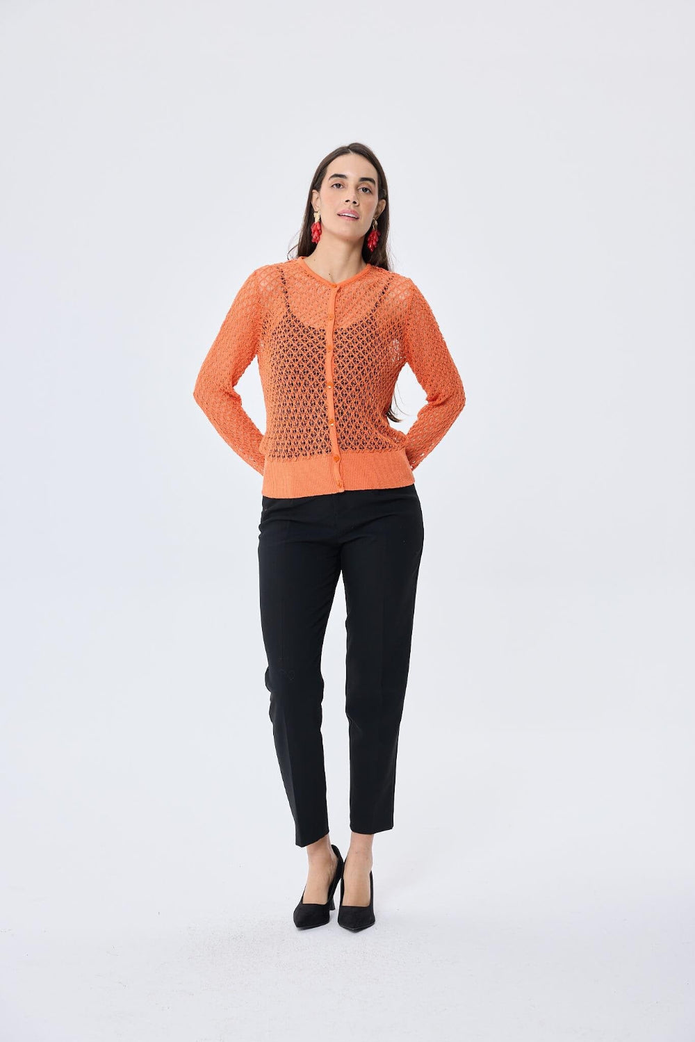 Addison Ajur Örgülü Kadın Triko Hırka Turuncu
