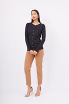 Mila Cardigan Bisiklet Yaka Basic Pamuklu Kadın Triko Hırka Siyah