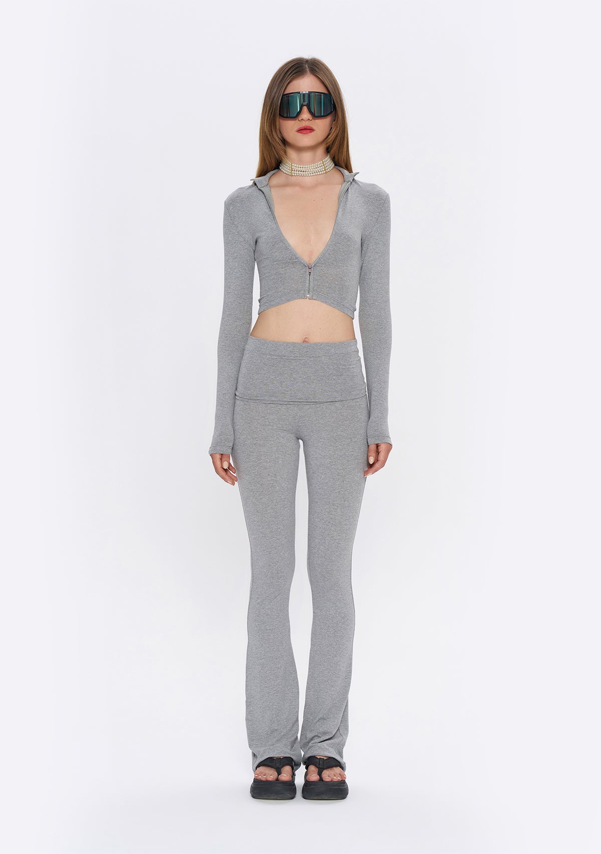 - Önden fermuarlı dar hırka.