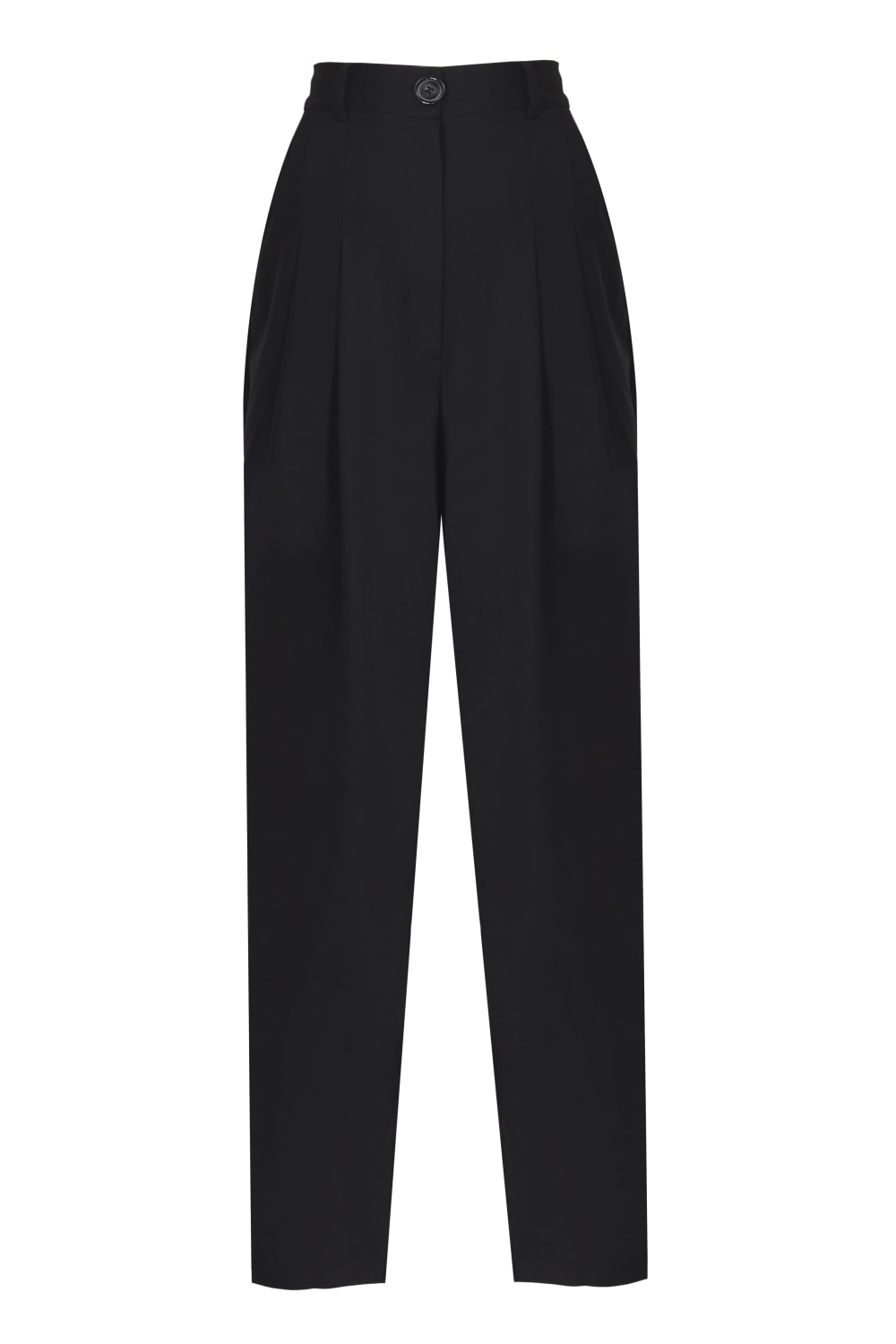 Zamansız bir şıklığın modern yorumu. Çift Pile Siyah Yün Pantolon, bele oturan ve kusursuz bir şekilde şekil alan tasarımıyla feminen hatları vurgularken, kalçadan genişleyen ve bacaklara doğru incelen siluetiyle dinamik bir hareket özgürlüğü sunar.