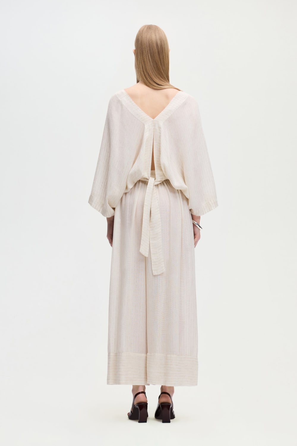 Bu özenle hazırlanmış parça, hassas bir dokuma süreci ile üretilmiş olup, (keten,liyosel) doğal liflerle harmanlanmıştır. Narin yapısının zarafetini koruması için, her kullanımda ona aynı özeni gösterilmeli ve dikkatle kullanılmalıdır.