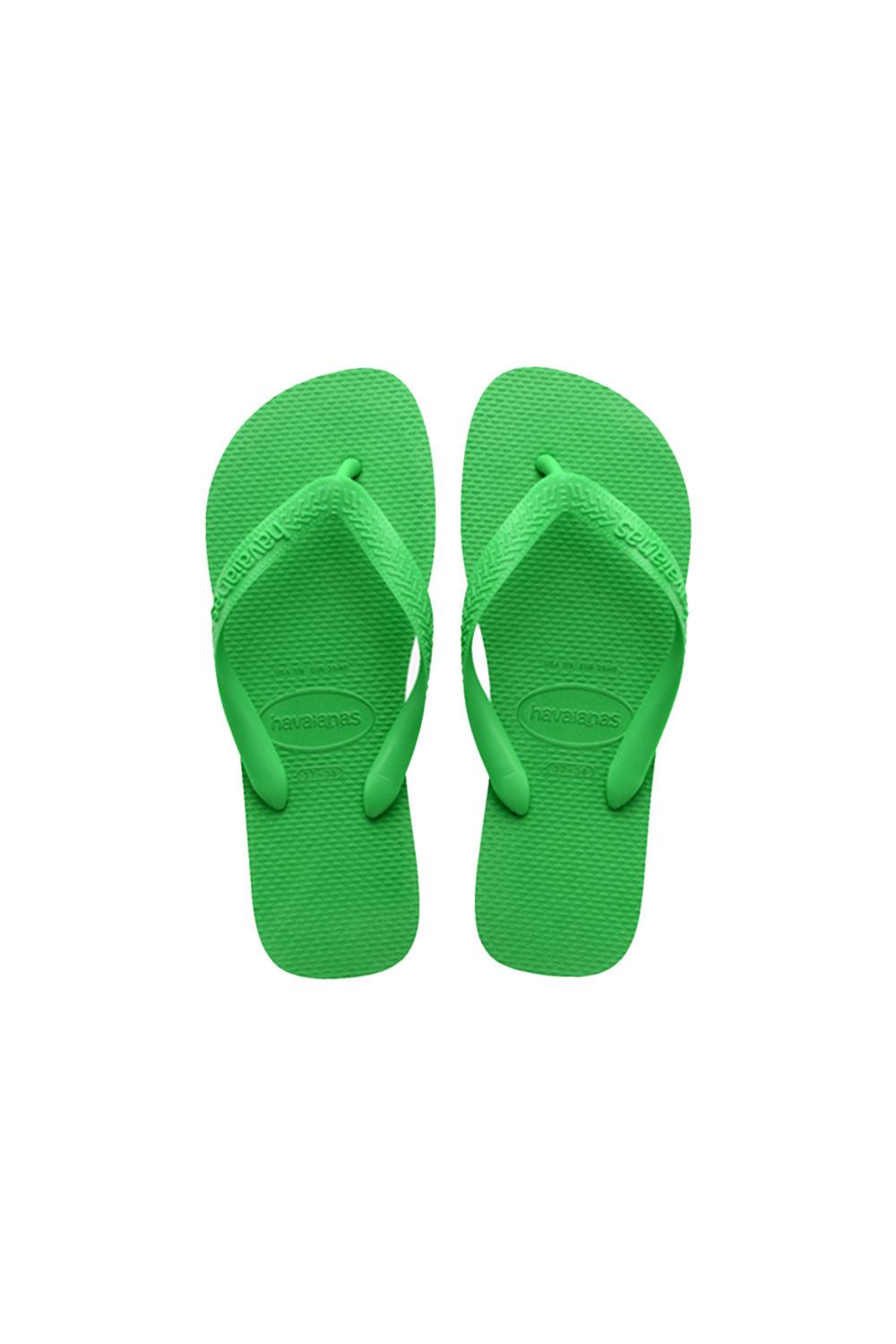 Havaianas Top parmak arası terlik, Japon Zori sandaletlerini temel alan en klasik modeldir. 1962'de yaratılan orijinal model, beyaz ve mavi olan geleneksel üsttü. "Top" un doğuşu, insanların tabanı ters çevirmeye ve bu modeli monokrom bir parmak arası terlik yapmaya karar vermesiyle geldi. Dönüştürülen bu modelin başarısı göz önüne alındığında, Havaianas 1996'da ilk düz renkli parmak arası terlikleri yeşil renkte yaratacaktı. Bugün pastelden nötr tonlara ve daha parlak renklere kadar geniş bir renk yelpazesi arasından seçim yapabilirsiniz. Yumuşak kauçuk sayası ve kaymaz tabanıyla bu parmak arası terlikler gün boyu rahat etmenizi sağlayacak.