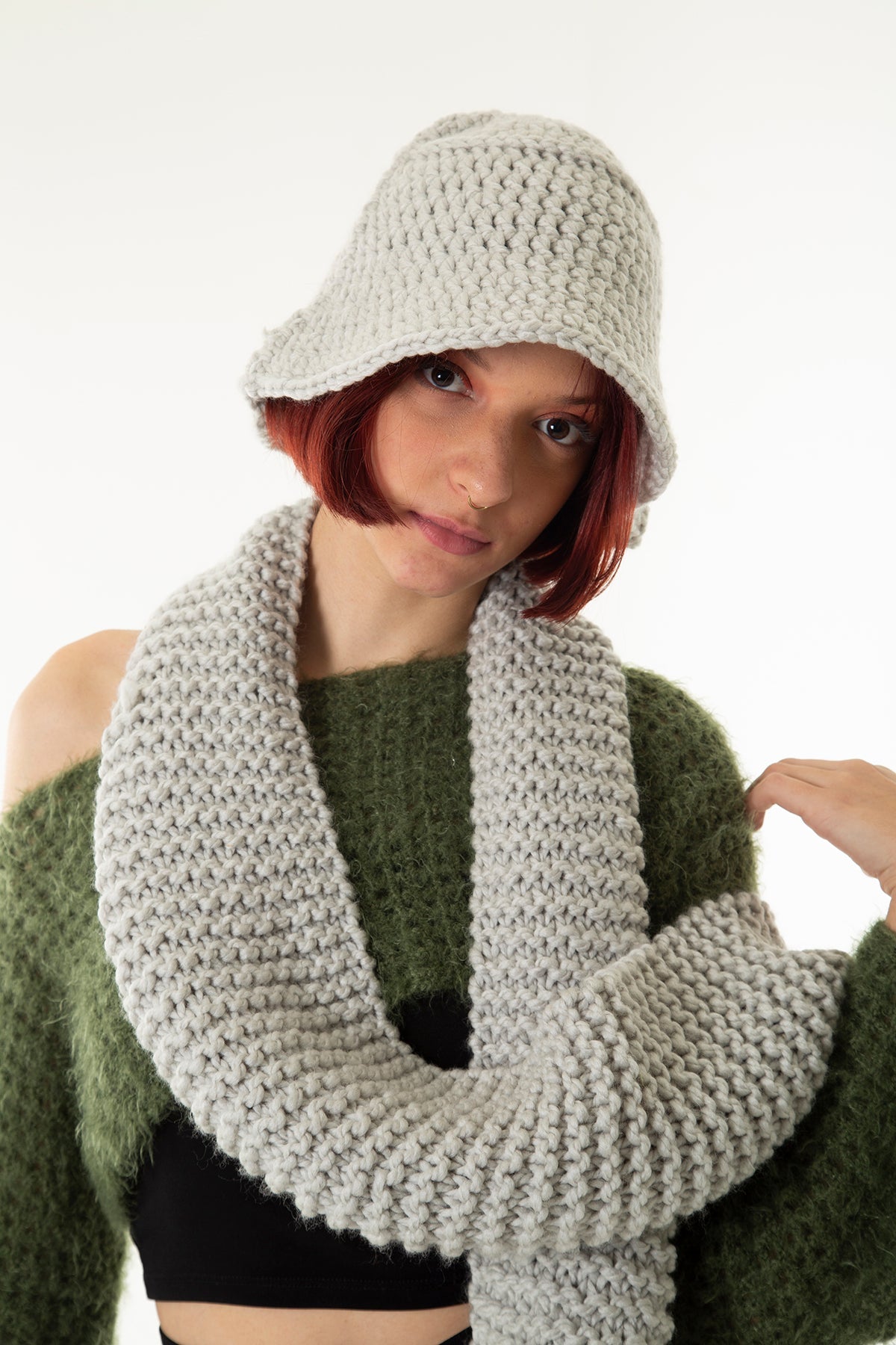 Gri El Örgüsü Bucket Şapka / Atkı Set