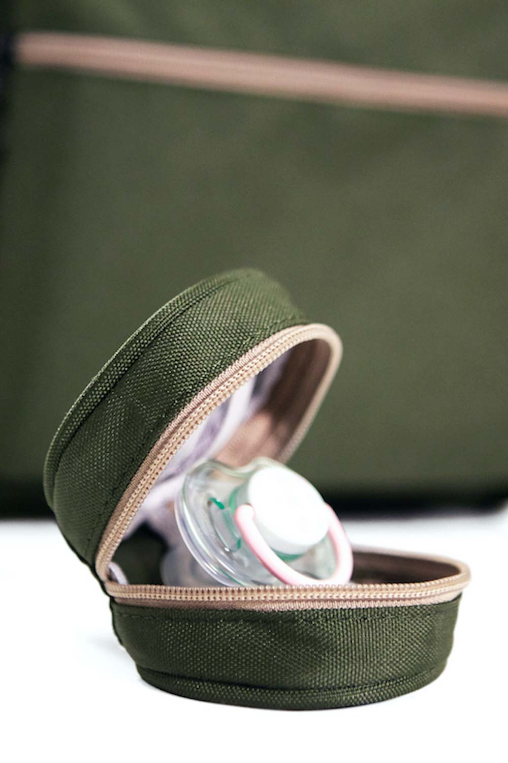 Fermuarlı emzik çantasının elastik bantları iki adet emziği taşır ve Gogi çantanın üzerine klipslenebilmesi sayesinde emziklere kolay erişim sağlar.