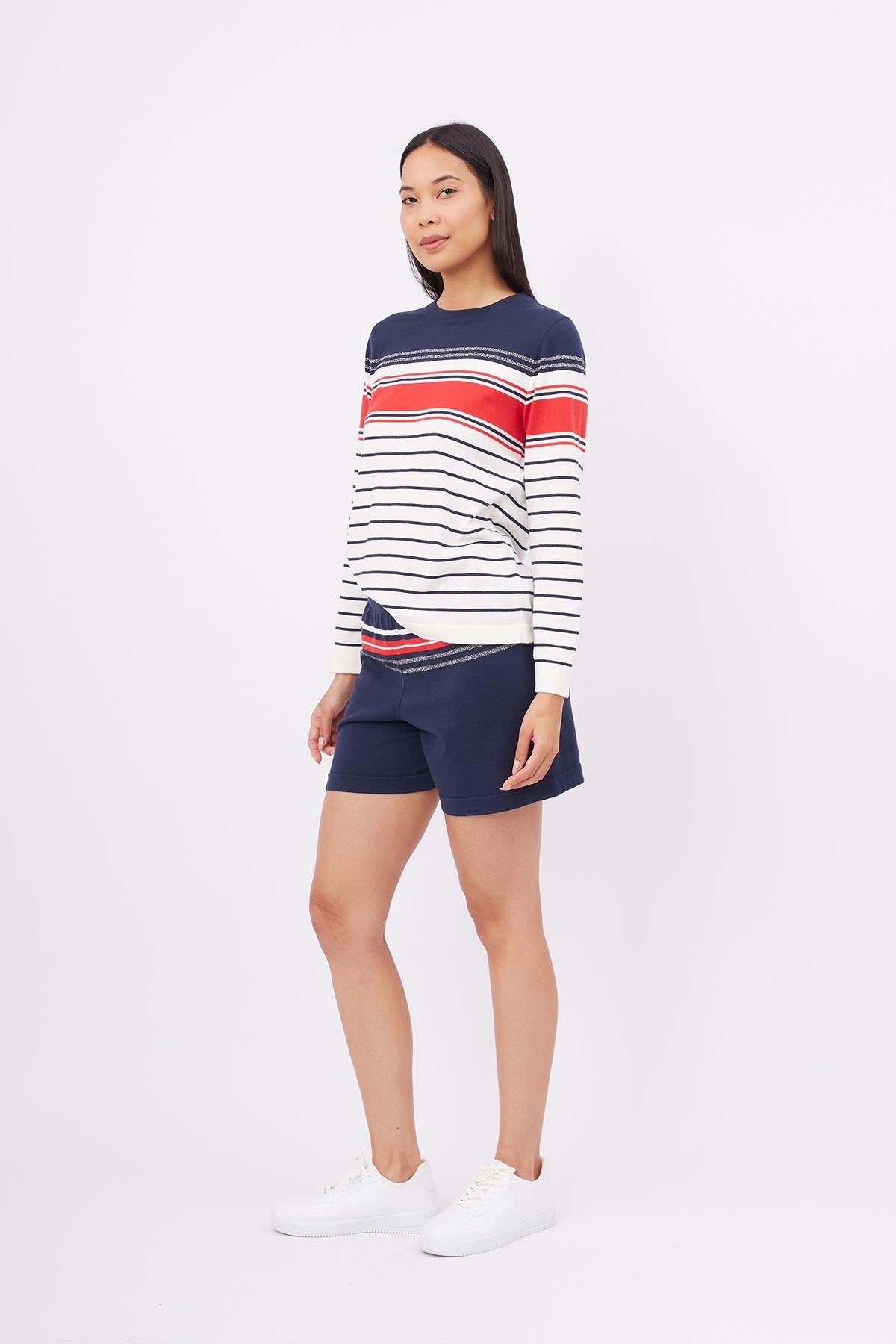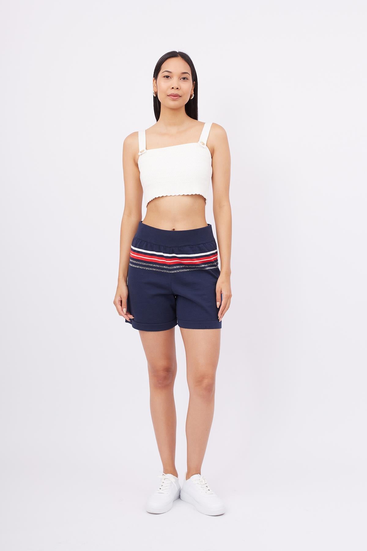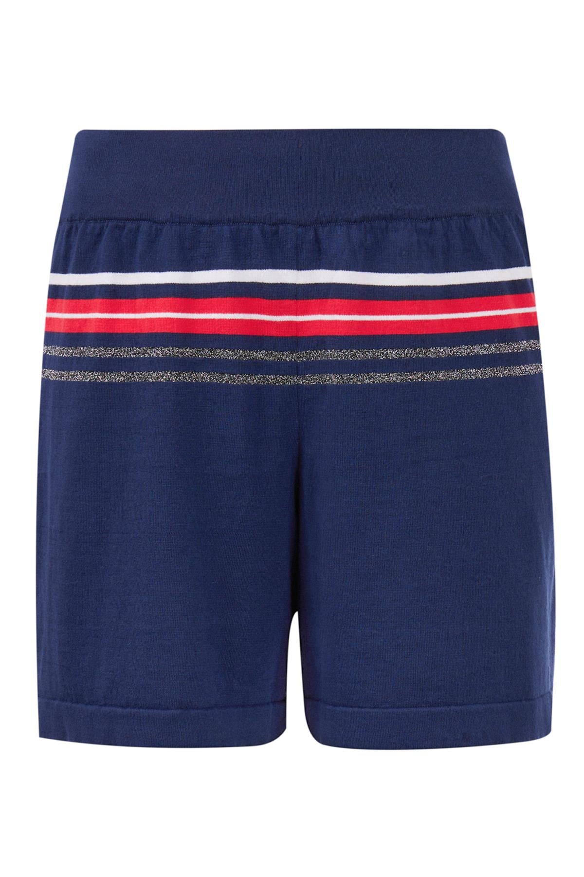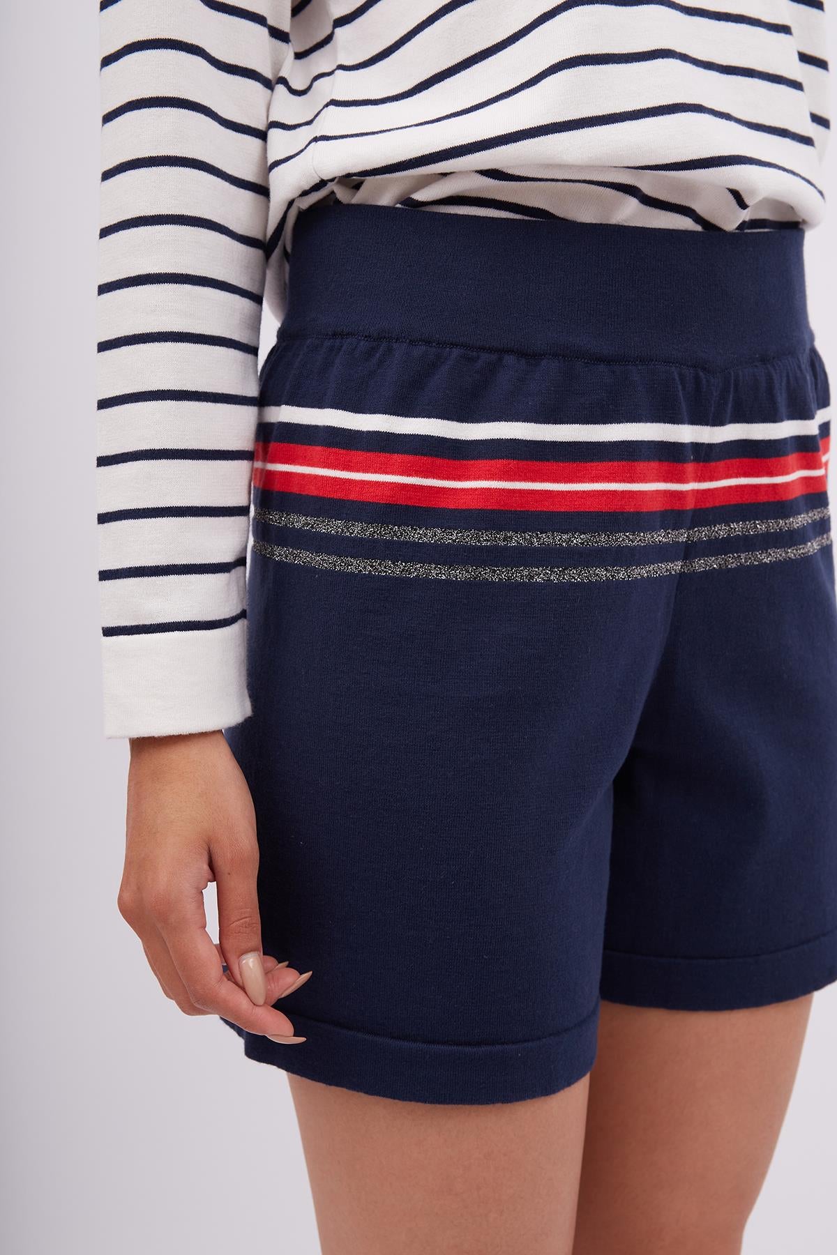Sofia Short Çizgili Beli Lastikli Standart Kesim Kadın Triko Şort Lacivert