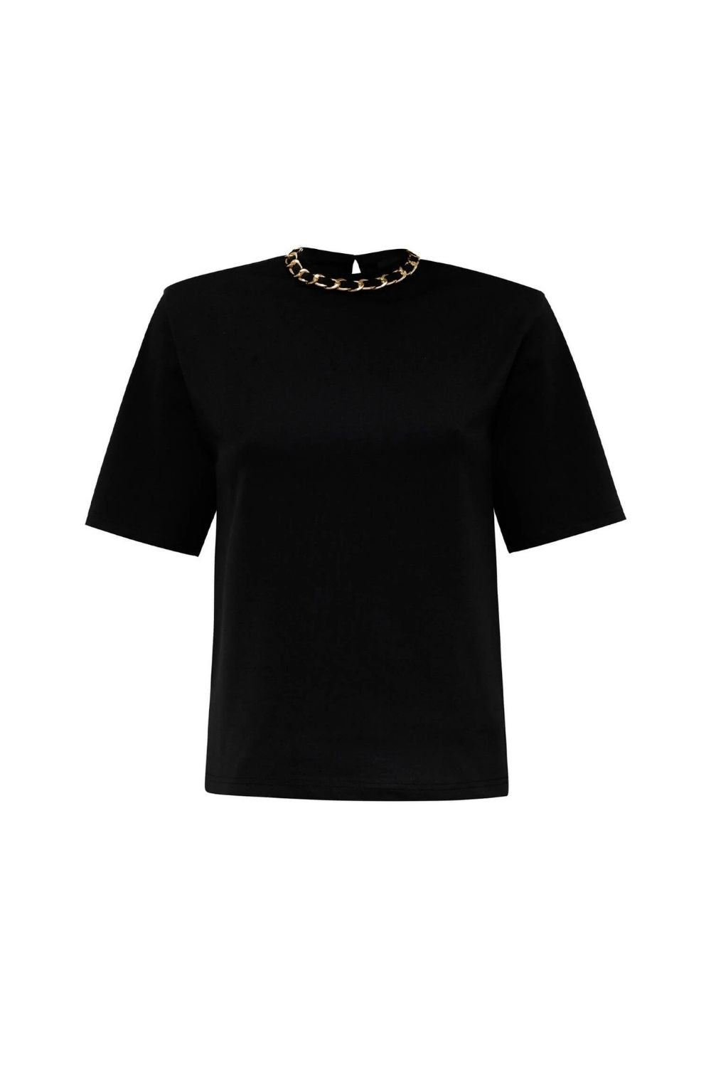 Alura Vatkalı Yakası Gold Zincir Detaylı Tshirt