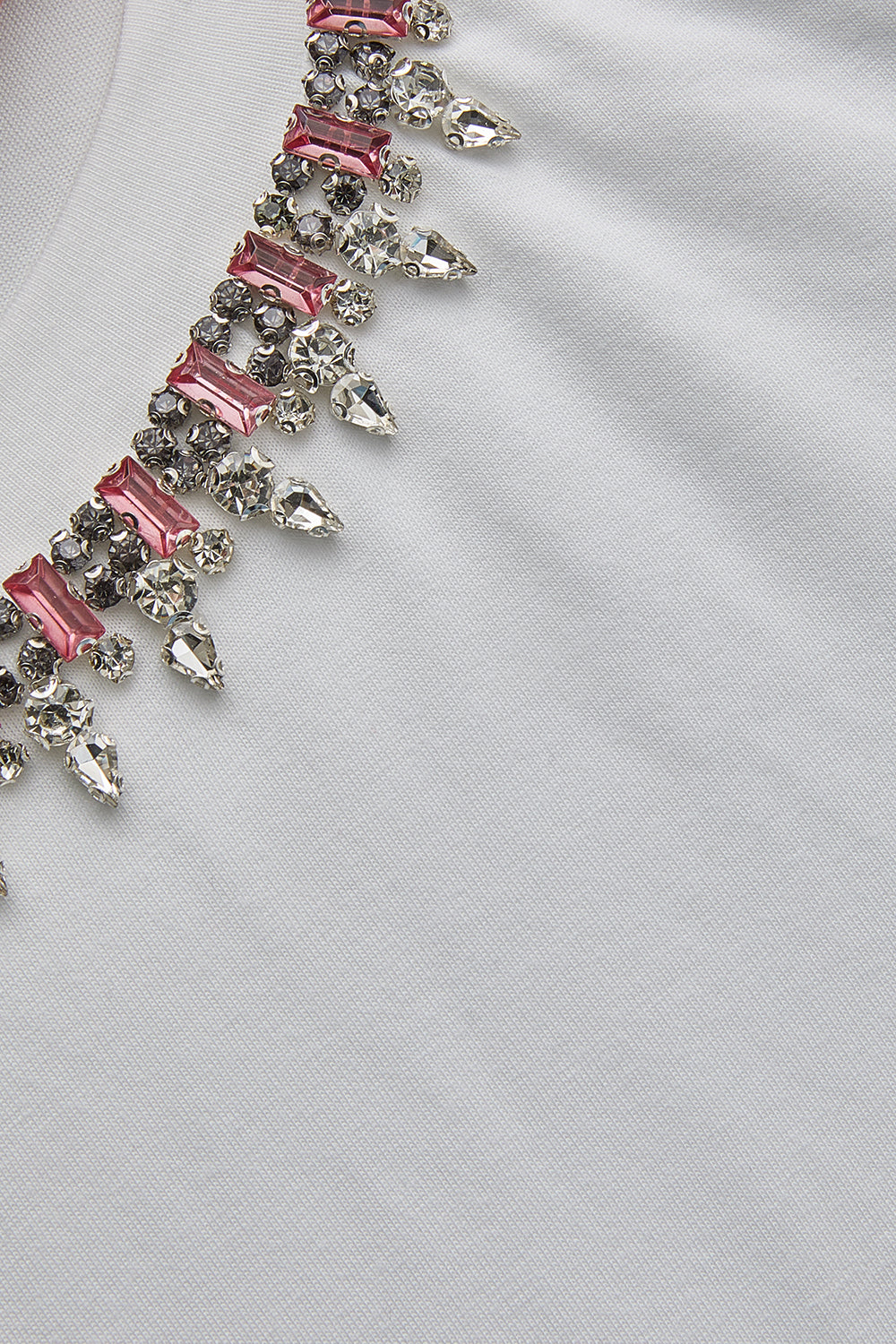 Bisiklet Yaka Kristal Taş İŞlemeli Beyaz Regular Pamuklu Örme Tişört