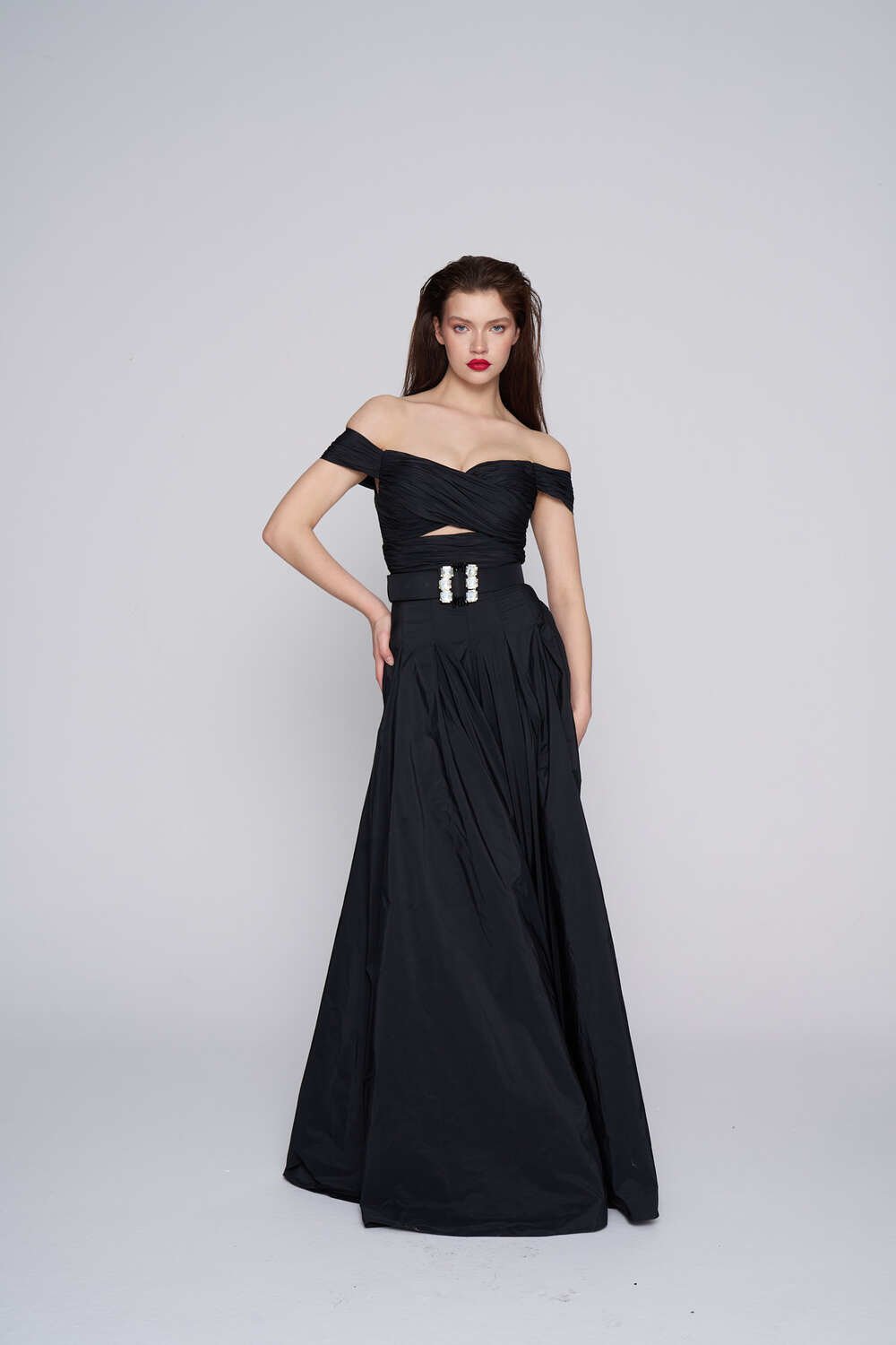 Ürün Açıklama: Göğüs Asimetrik Drapeli İspanyol Paça Tulum