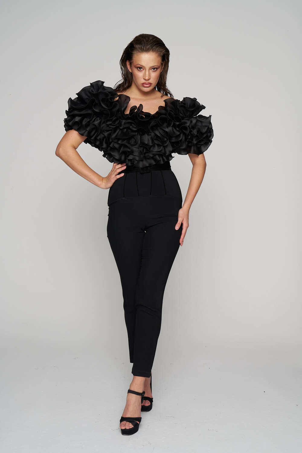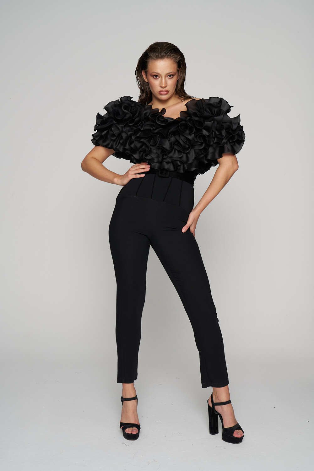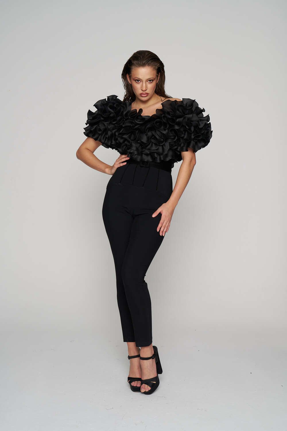 Ürün Açıklama: Yakası Volanlı İpek Organze Tulum