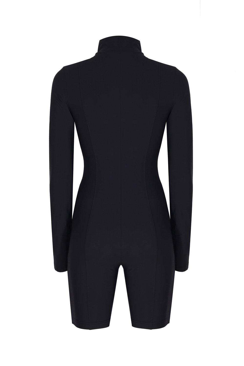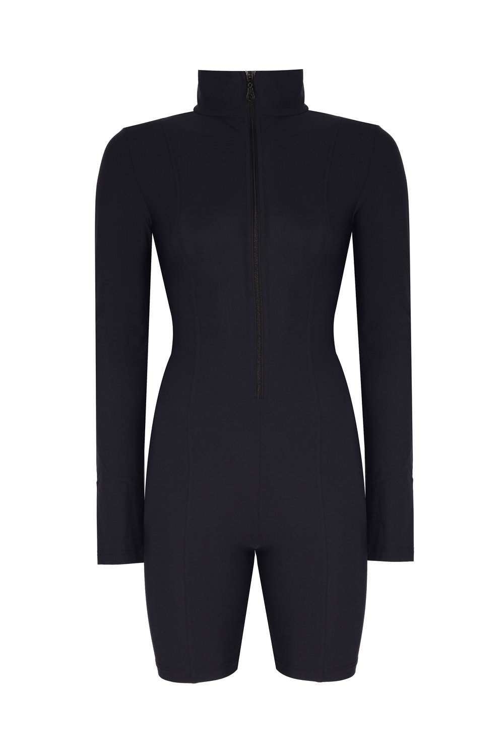 Nervür Detaylı Fermuarlı Kısa Tulum