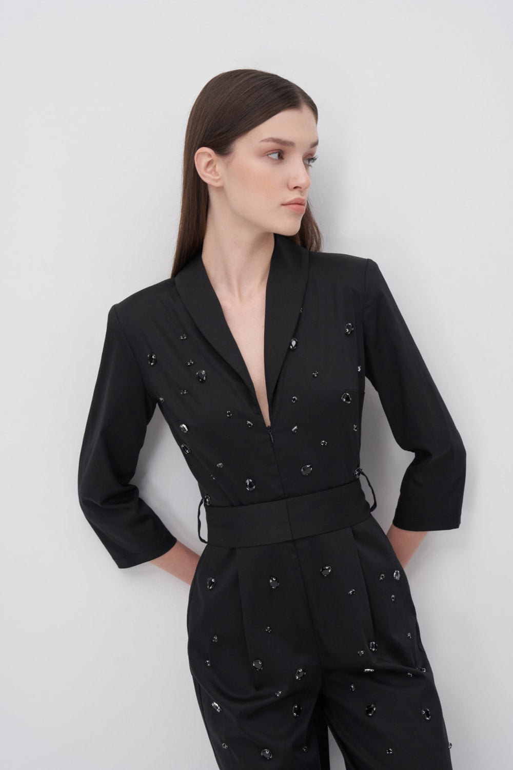 WINGCOTT Taş İşlemeli Fermuar Detaylı Tulum