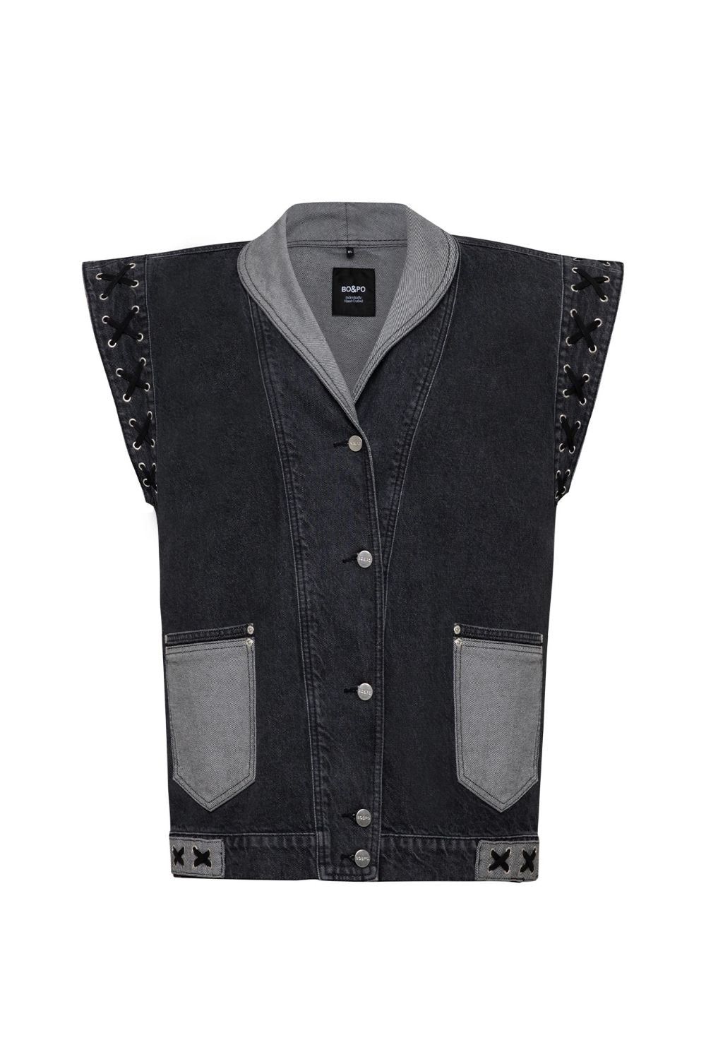 Her Bedene Uyumlu Oversize Denim Yelek | %100 Cotton
