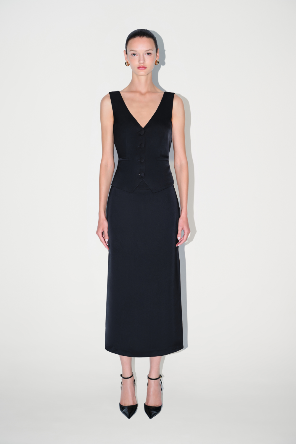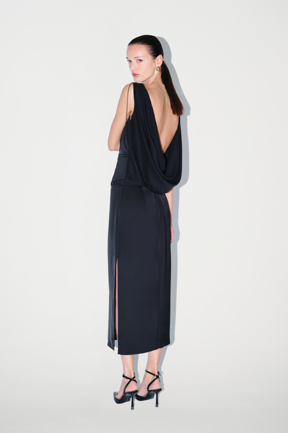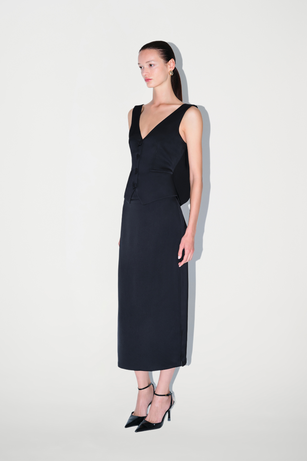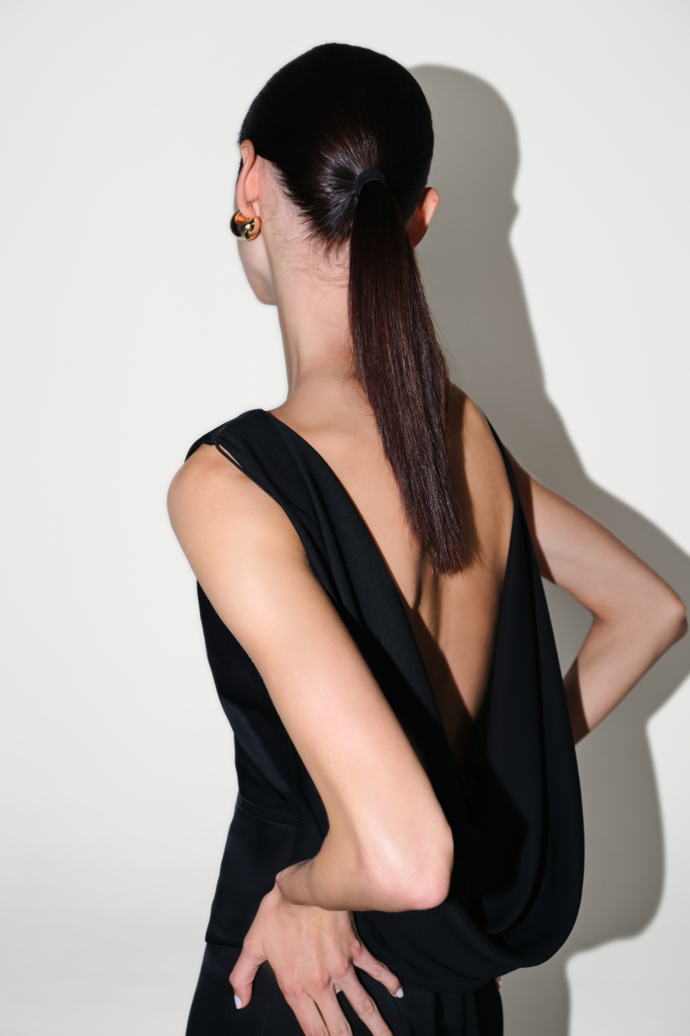 Simone Yelek, öndeki net kesimiyle dikkat çekerken, arkasındaki tül detaylı açık sırt tasarımıyla yumuşak bir akış yakalar. Hem güçlü hem de zarif bir duruş sunar.