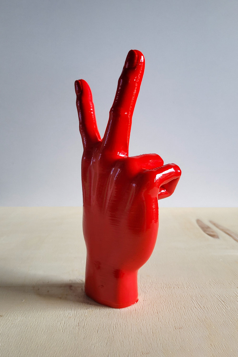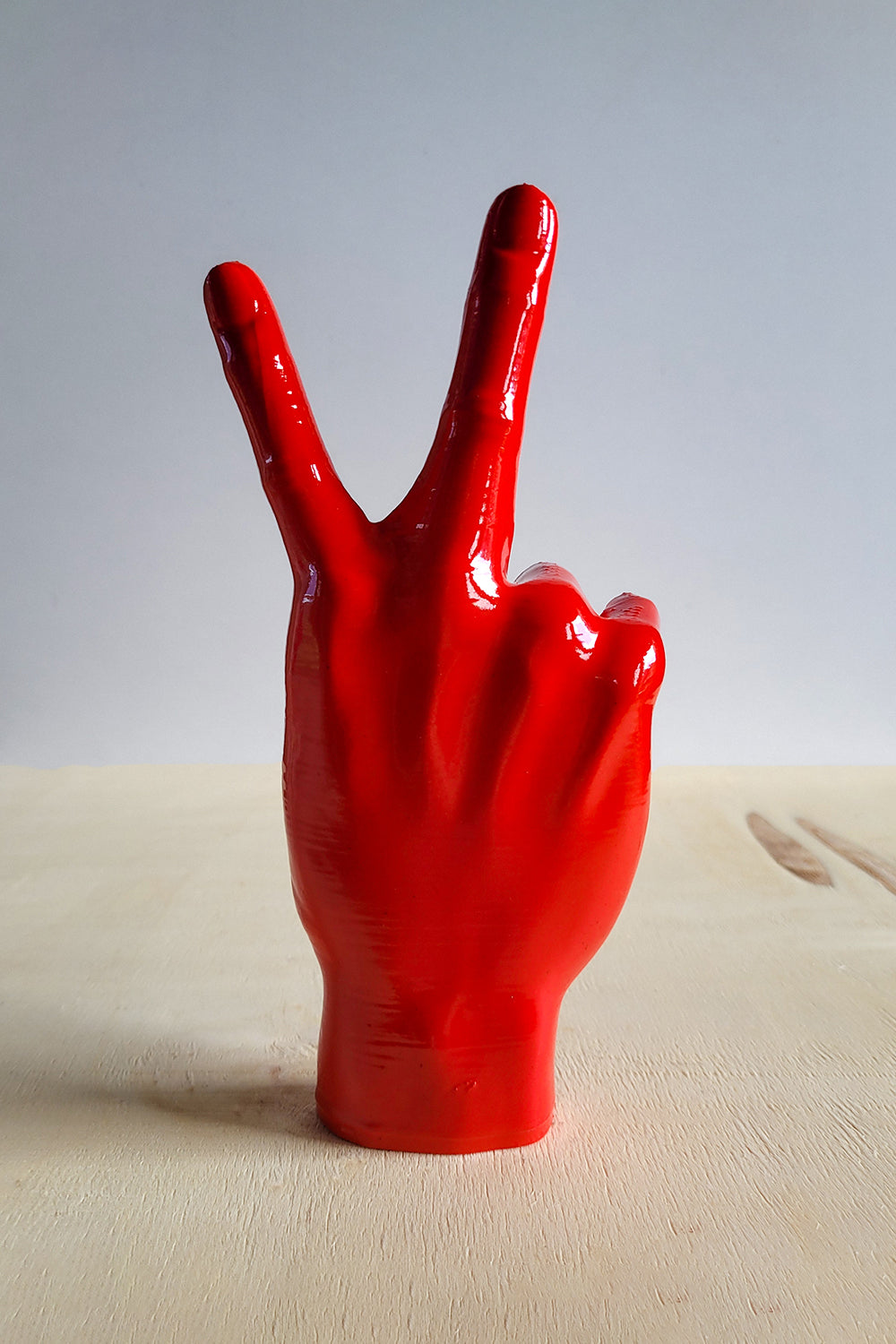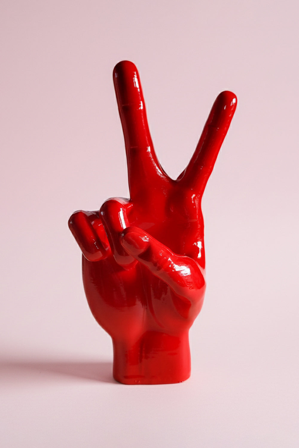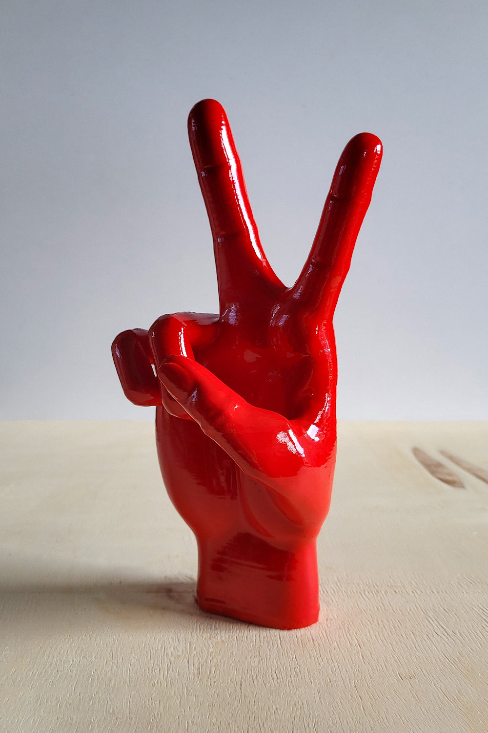 Üç boyutlu yazıcı teknolojisinden yardım alarak üretilmiş elde özenle işlenmiştir. Bu özel biopolimerden üretilmiş Victory el figürü, zafer ve barışın simgesi olarak evinize anlamlı bir estetik katıyor. 20 cm yüksekliğindeki bu heykel, çevre dostu ve sürdürülebilir malzemesiyle dikkat çekerken, dekorasyonunda farklılık arayanlar için ideal bir parça. Hem şık hem de güçlü bir mesaj taşıyan bu aksesuarla evinizi süsleyin