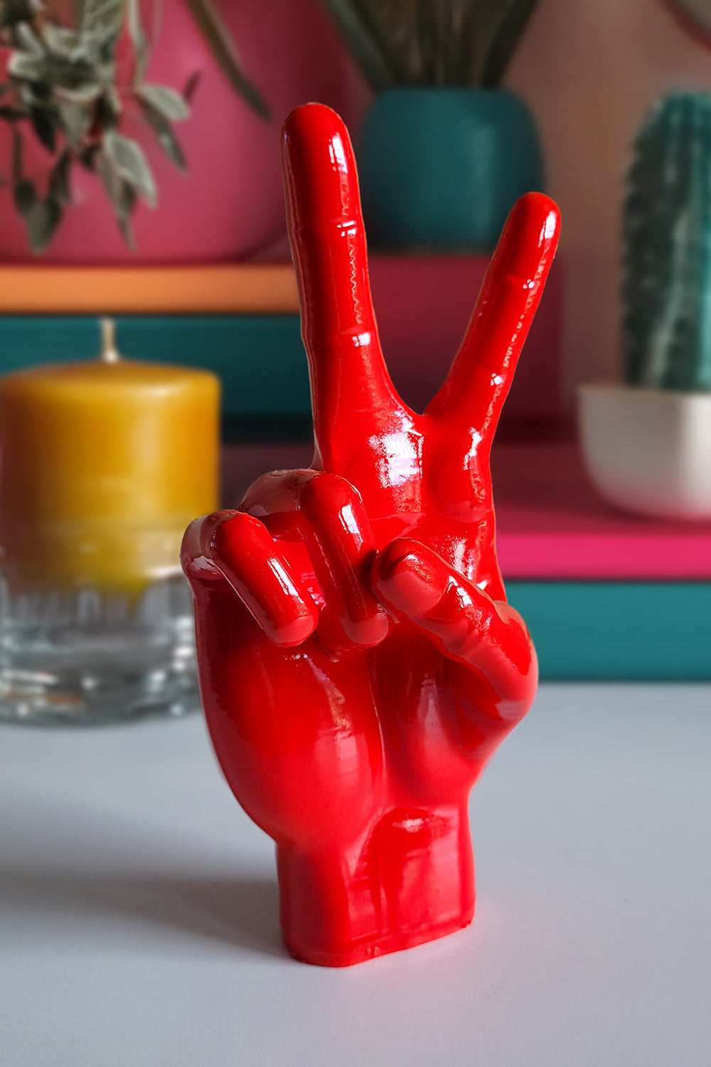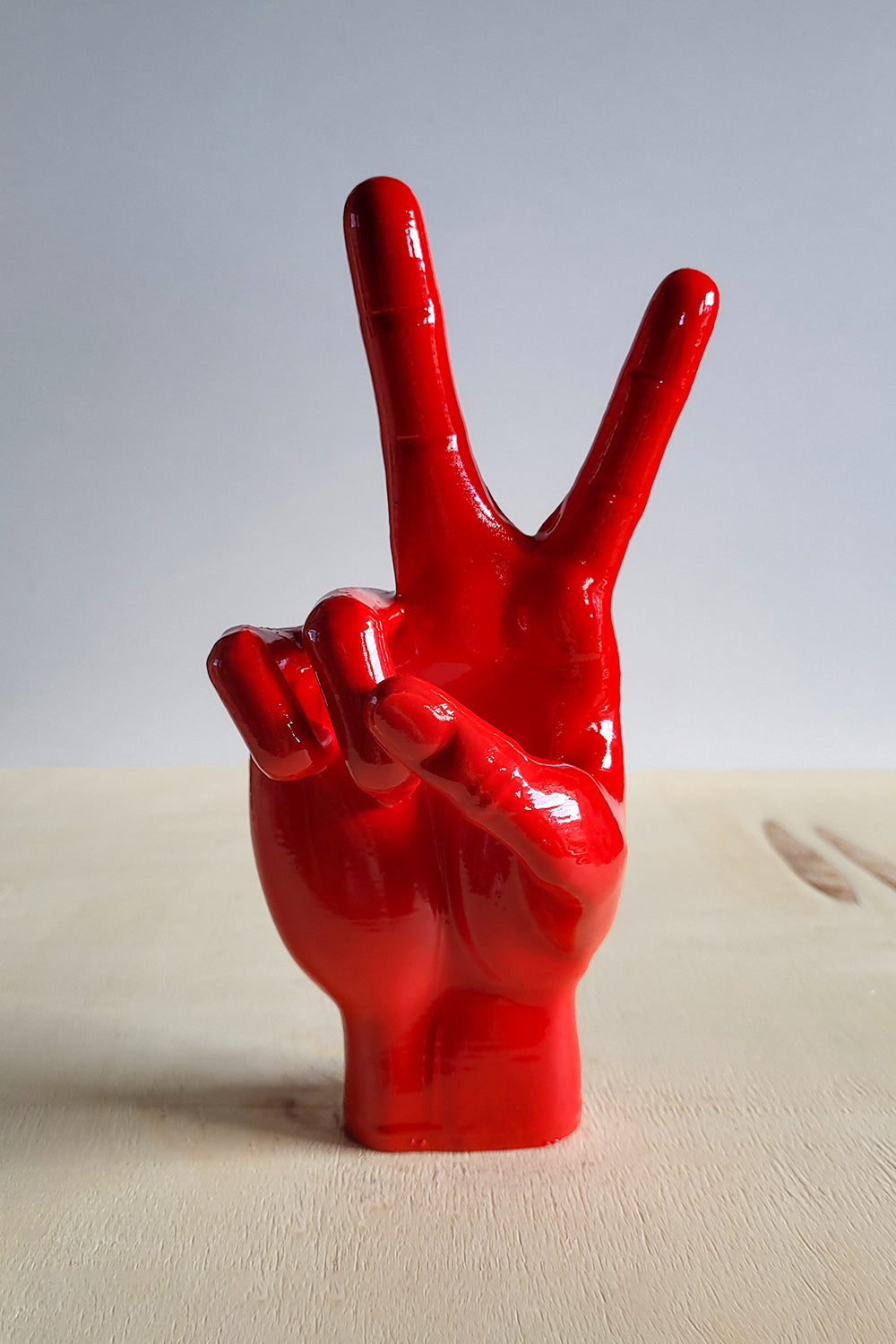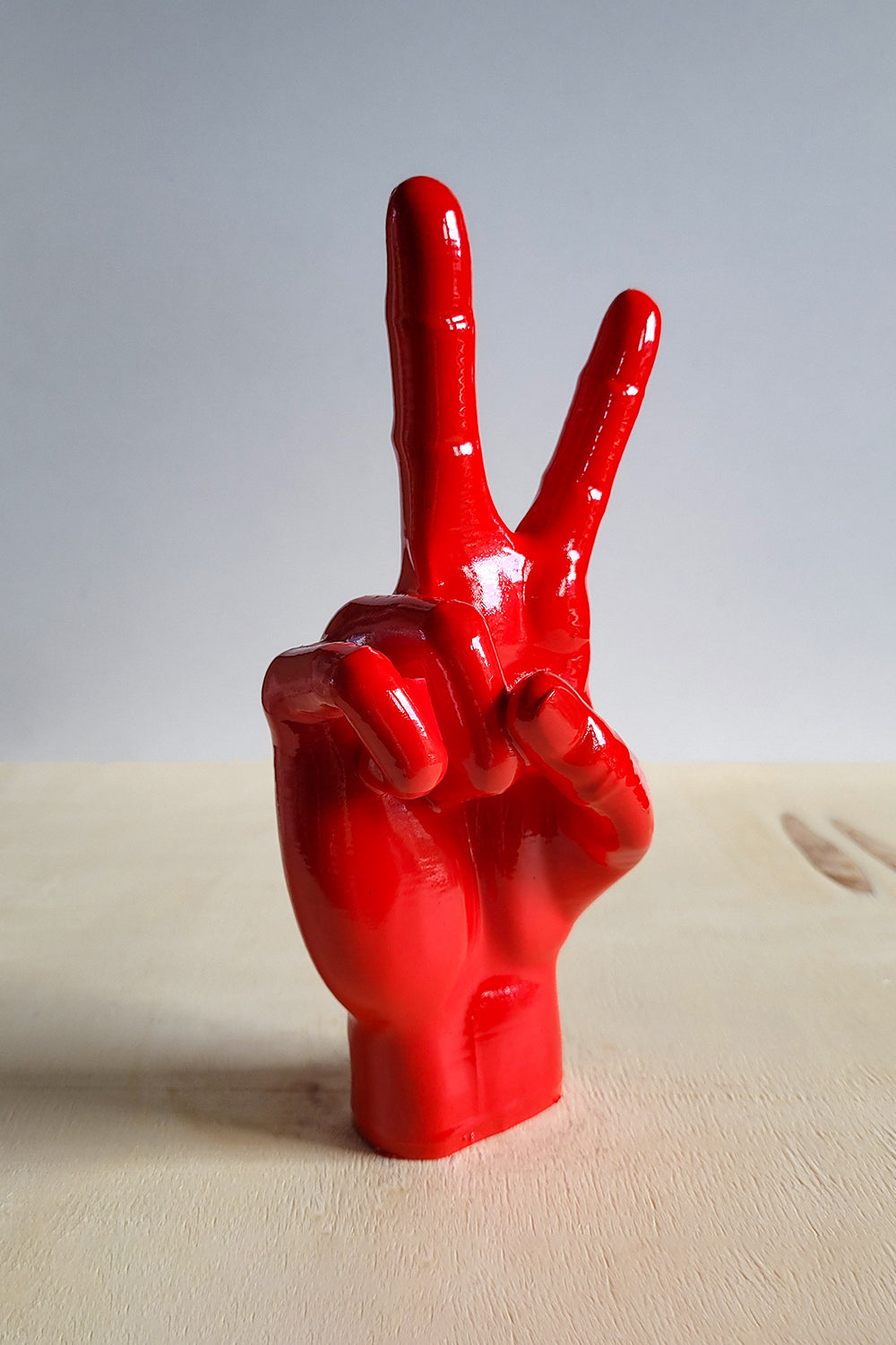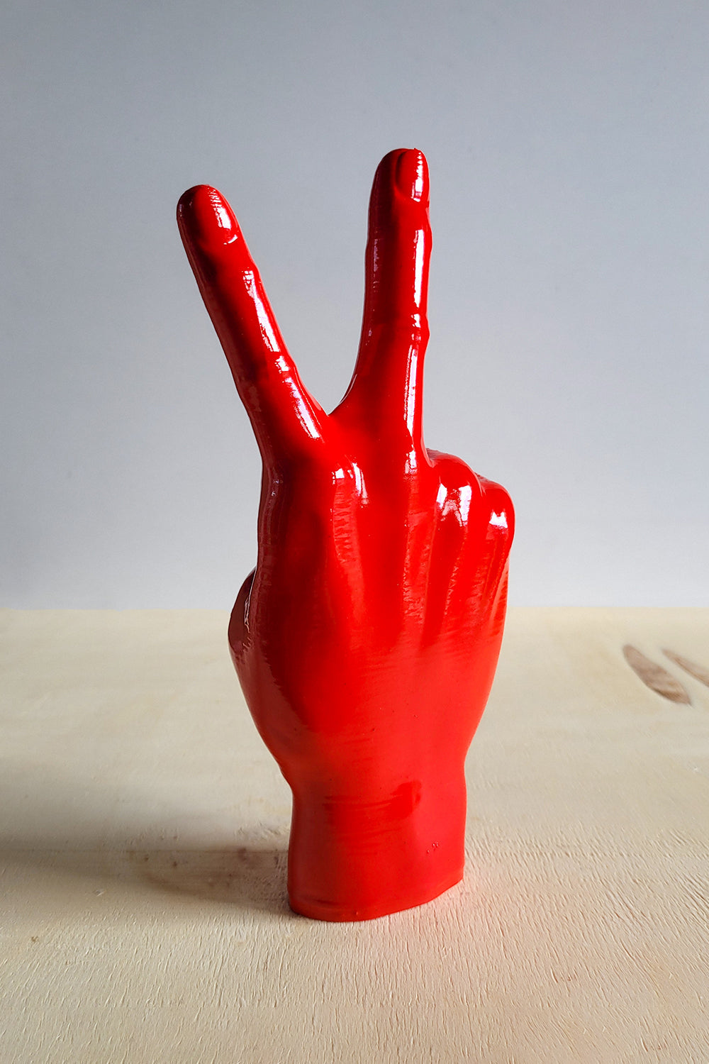 Üç boyutlu yazıcı teknolojisinden yardım alarak üretilmiş elde özenle işlenmiştir. Bu özel biopolimerden üretilmiş Victory el figürü, zafer ve barışın simgesi olarak evinize anlamlı bir estetik katıyor. 20 cm yüksekliğindeki bu heykel, çevre dostu ve sürdürülebilir malzemesiyle dikkat çekerken, dekorasyonunda farklılık arayanlar için ideal bir parça. Hem şık hem de güçlü bir mesaj taşıyan bu aksesuarla evinizi süsleyin