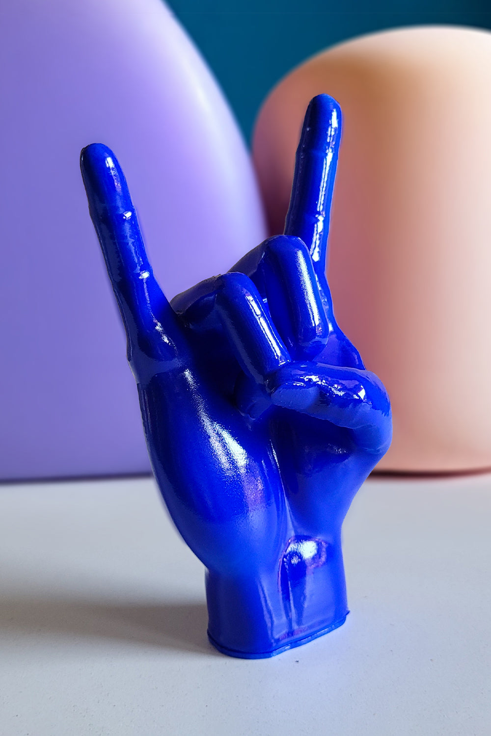 Enerjiyi yükseltmeye hazır mısınız?"Rock On" el heykeli, güçlü duruşuyla her ortamda dikkat çeker. PLA biyopolimer malzemeden 3D baskı tekniğiyle üretilmiş, ardından özenli el işçiliğiyle son hali verilmiştir.