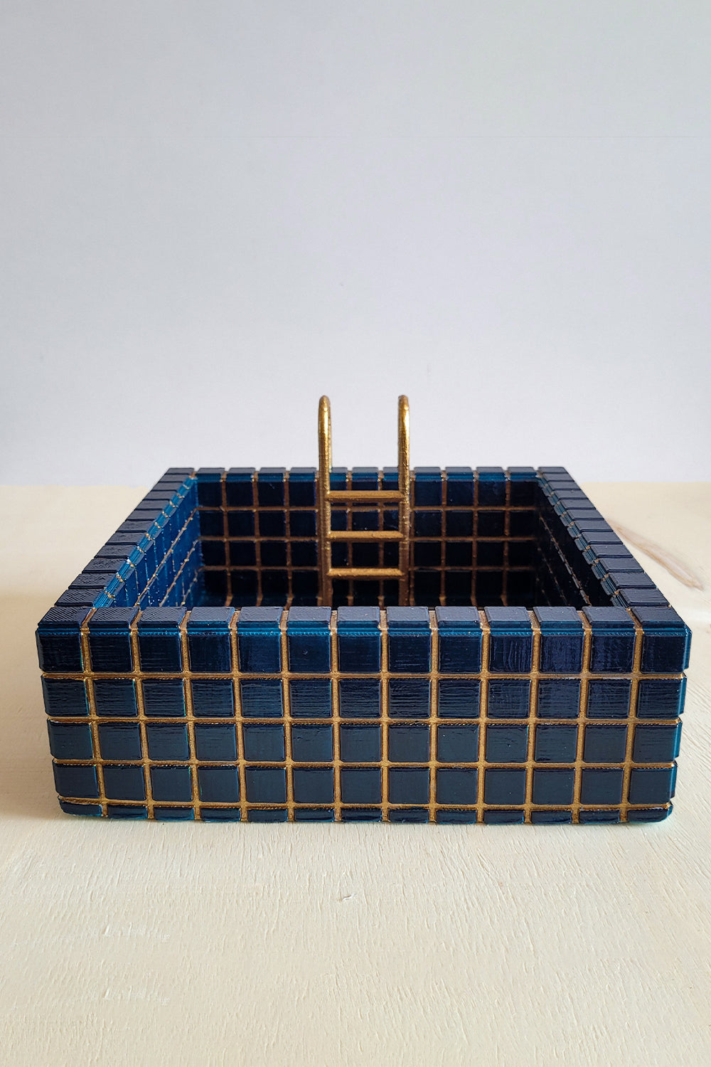 Küçük boyutuyla büyük bir etki yaratan bu mini havuz formundaki saksı, gerçek havuz karolarını andıran detaylı yüzeyi ve metal merdiven dokunuşuyla sıradanlıktan çok uzakta! 🏊♀️✨
