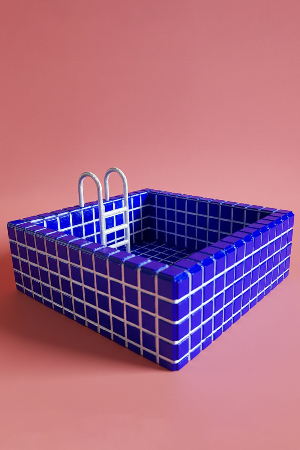 Küçük boyutuyla büyük bir etki yaratan bu mini havuz formundaki saksı, gerçek havuz karolarını andıran detaylı yüzeyi ve metal merdiven dokunuşuyla sıradanlıktan çok uzakta! 🏊♀️✨