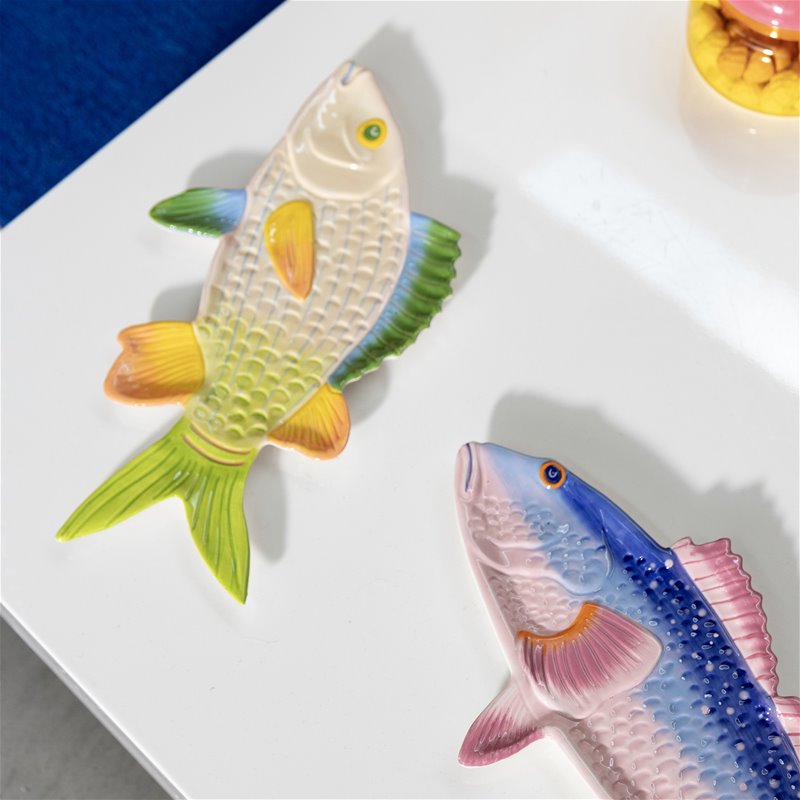 Dekoratif Levrek Balığı Tabağı Masalarınıza neşeli bir dokunuş katacak bu dekoratif levrek balığı tabağı, en çarpıcı renk kombinasyonlarıyla elle boyanmıştır. Arkadaşlarınız ve ailenizle keyifli akşam yemeklerinde, en sevdiğiniz yemekleri şık bir şekilde servis edebilirsiniz.