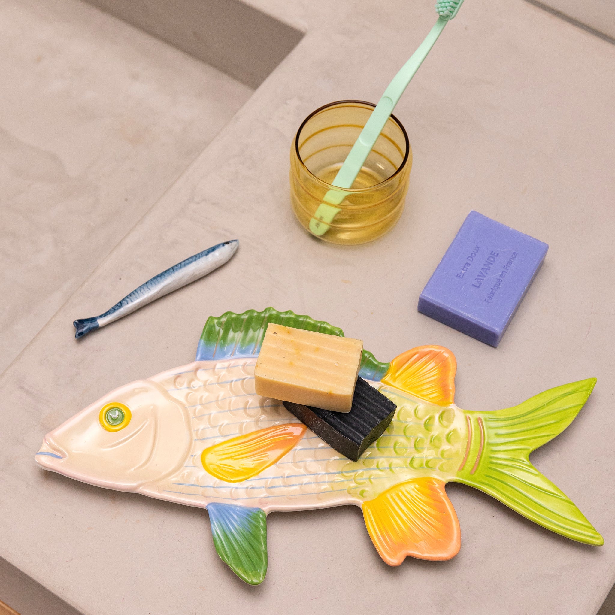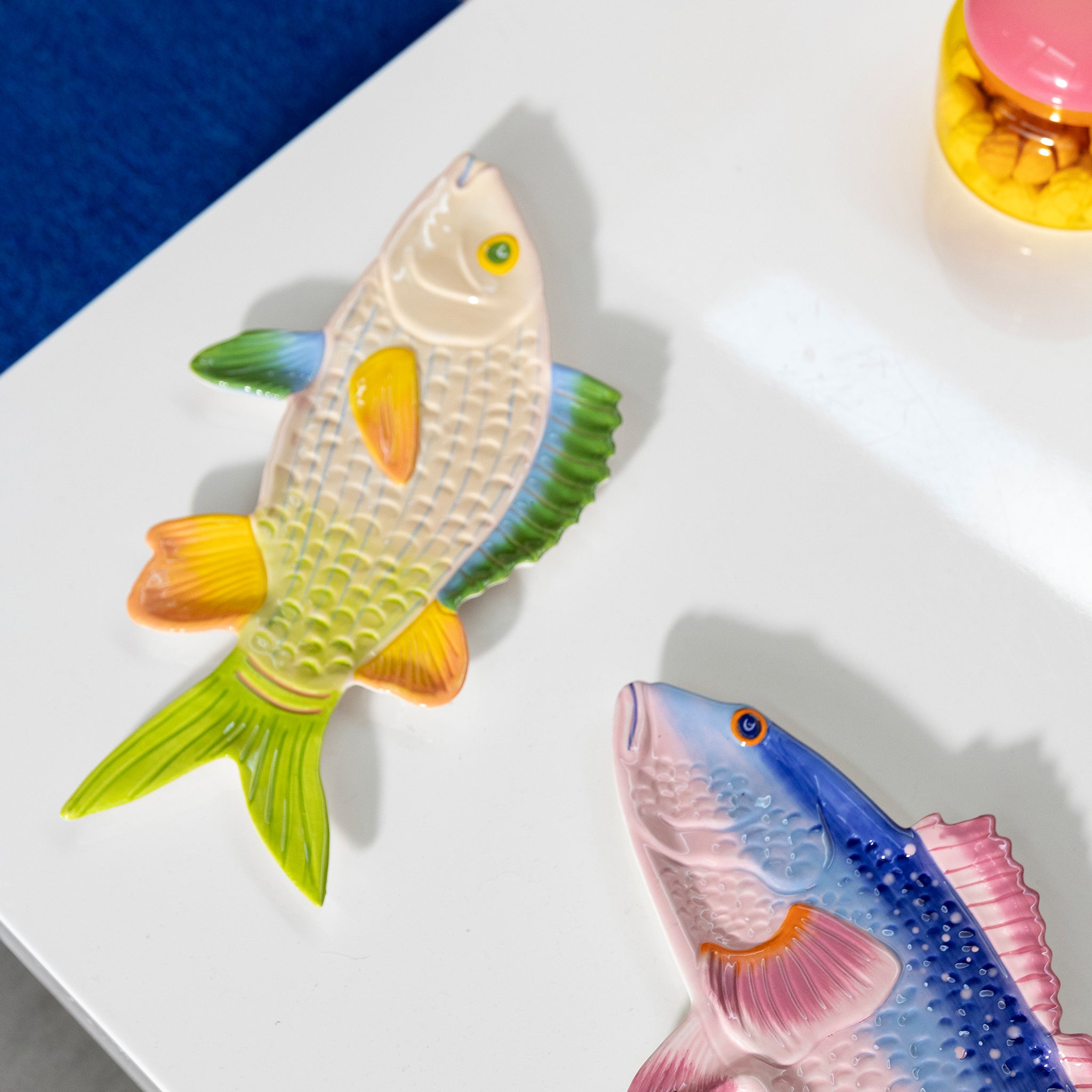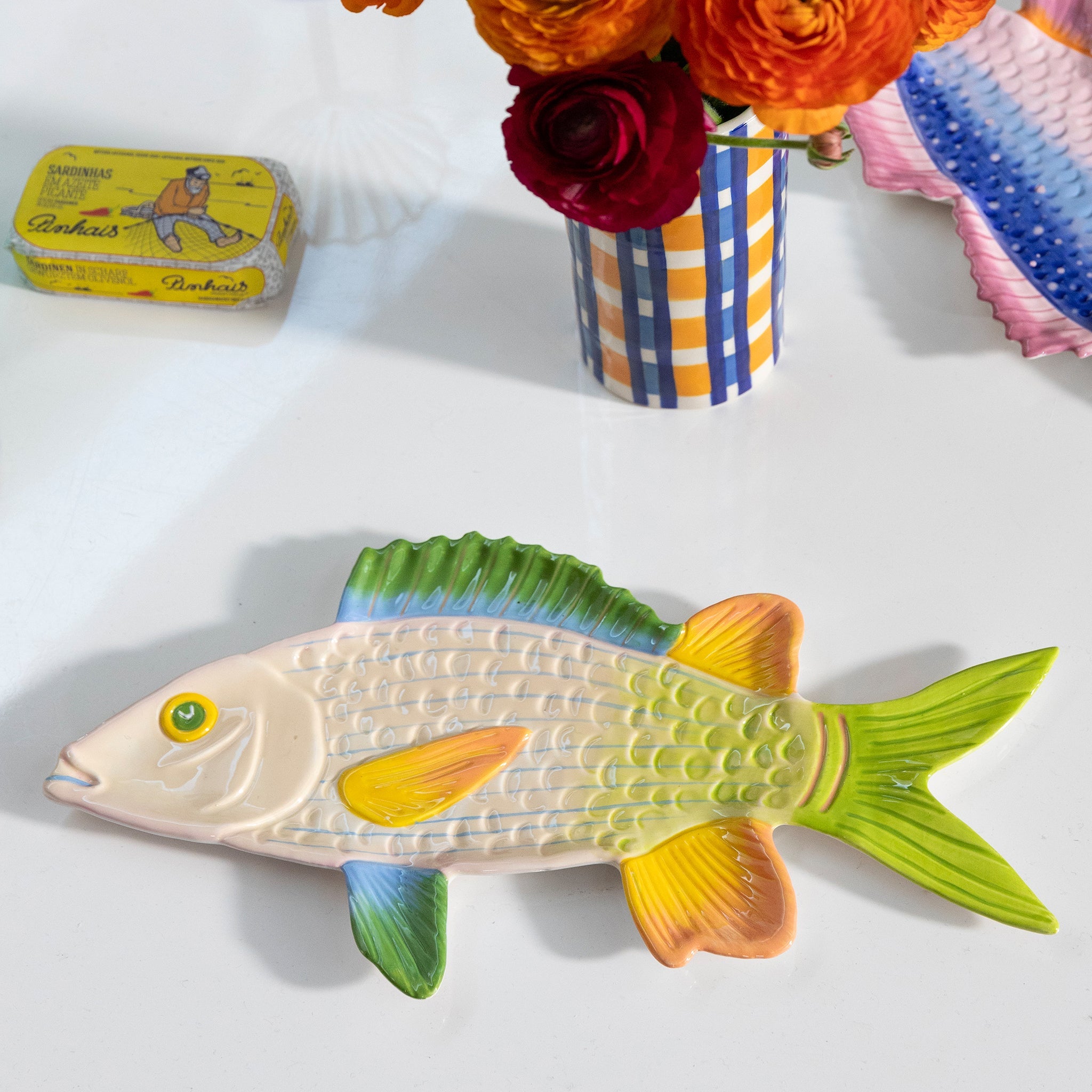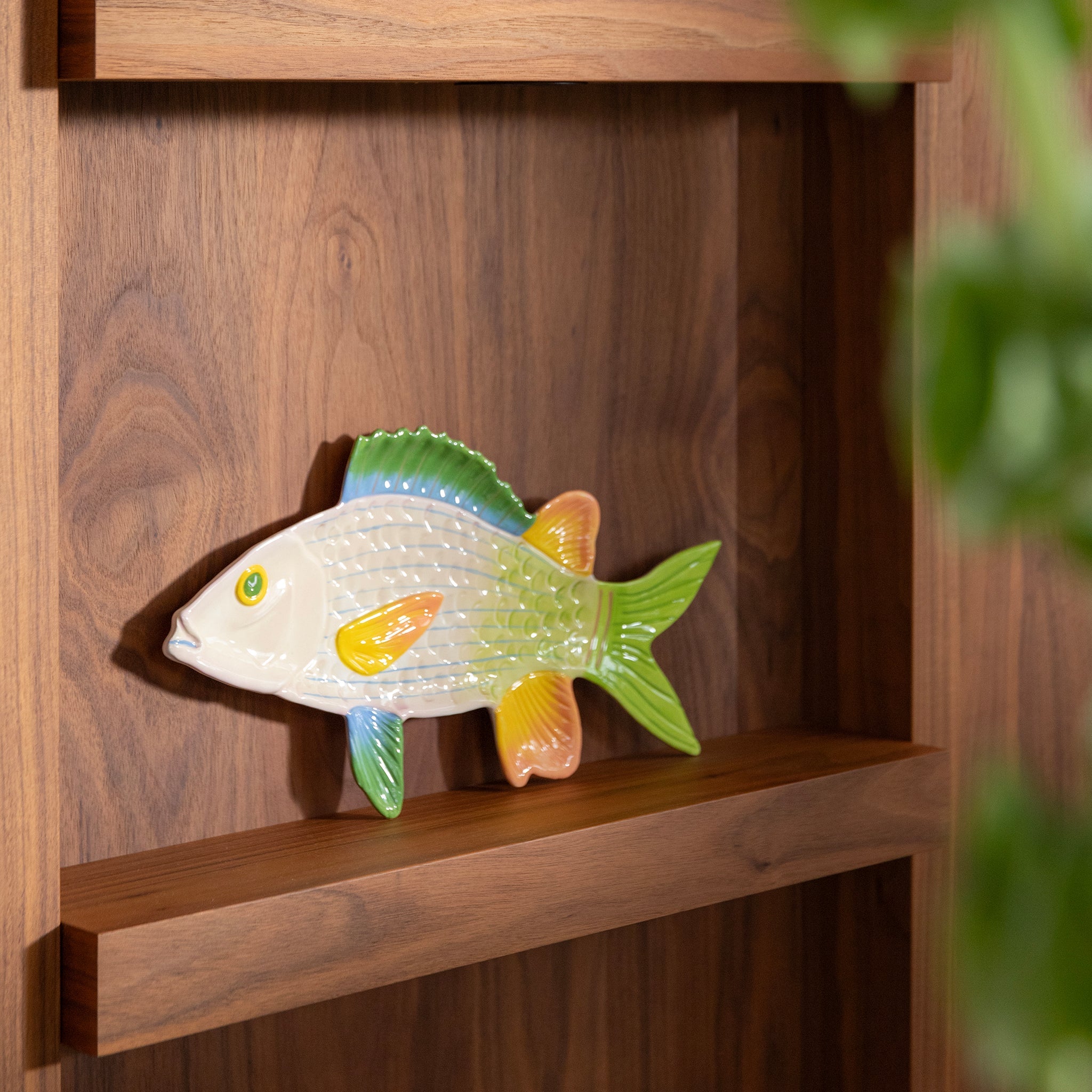 Masalarınıza neşeli bir dokunuş katacak bu dekoratif tetik balığı tabağı, canlı ve çarpıcı renk kombinasyonlarıyla elle boyanmıştır. Arkadaşlarınız ve ailenizle keyifli akşam yemeklerinde, en sevdiğiniz yemekleri şık bir şekilde servis etmek için idealdir.