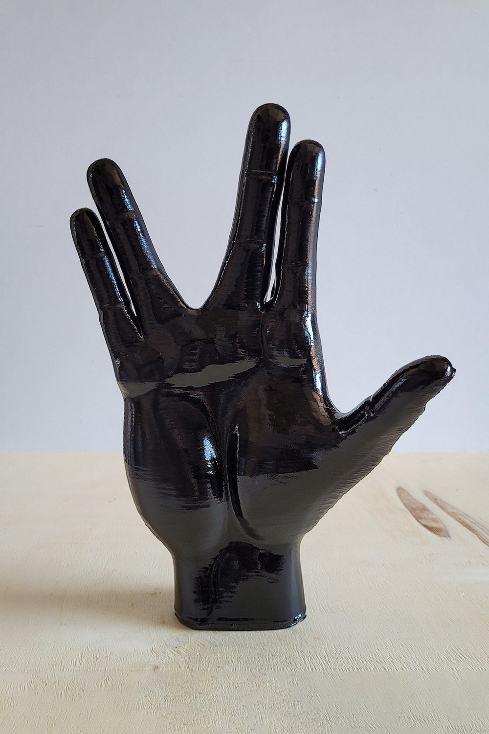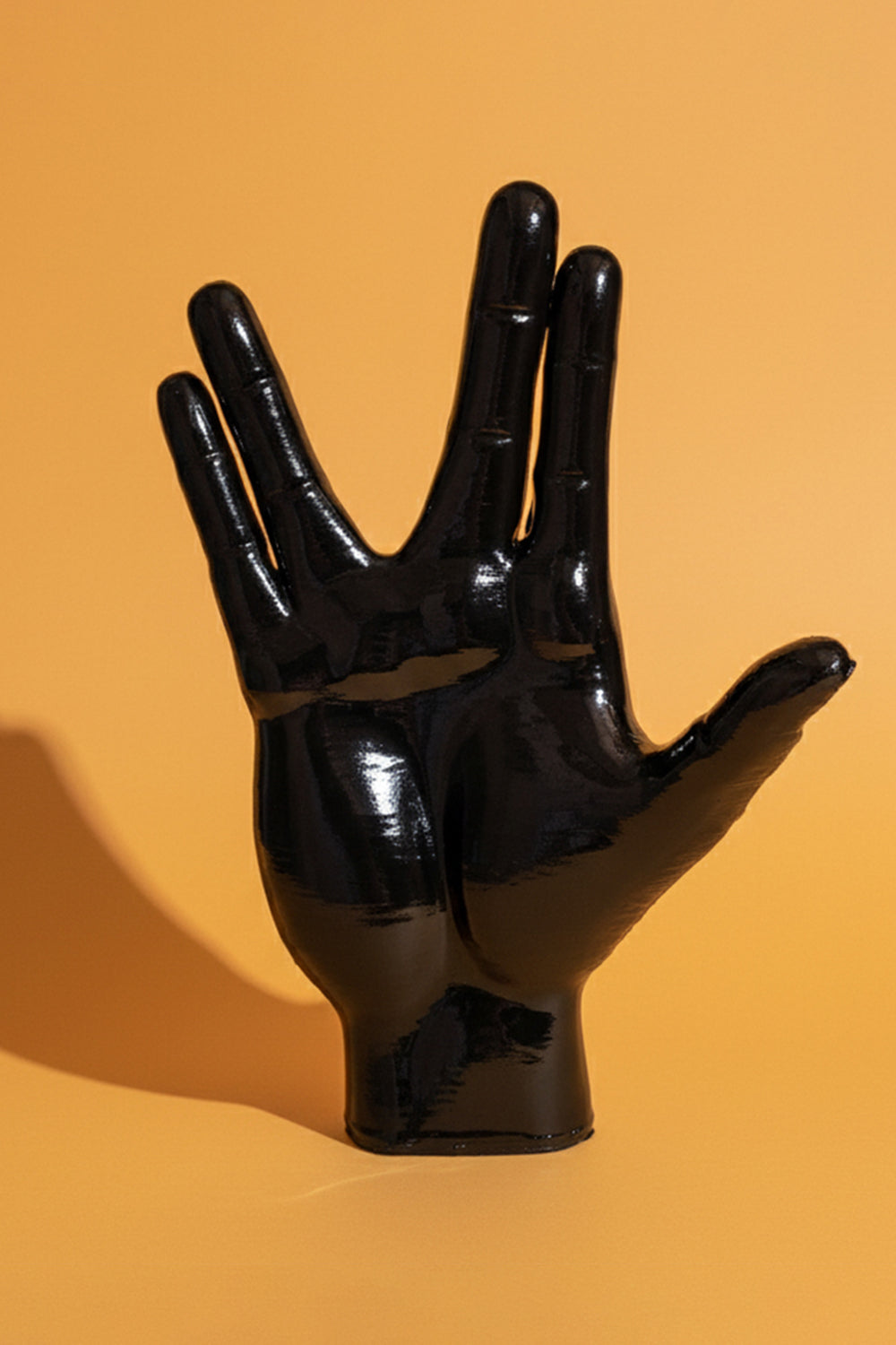 "Live long and prosper!"Ünlü Vulcan selamını ölümsüzleştiren bu el heykeli, pozitif bir mesajı ve ikonik bir duruşu evinize taşıyor.PLA biyopolimer malzemeden 3D baskı ile üretilmiş, ardından el işçiliğiyle özenle tamamlanmıştır.
