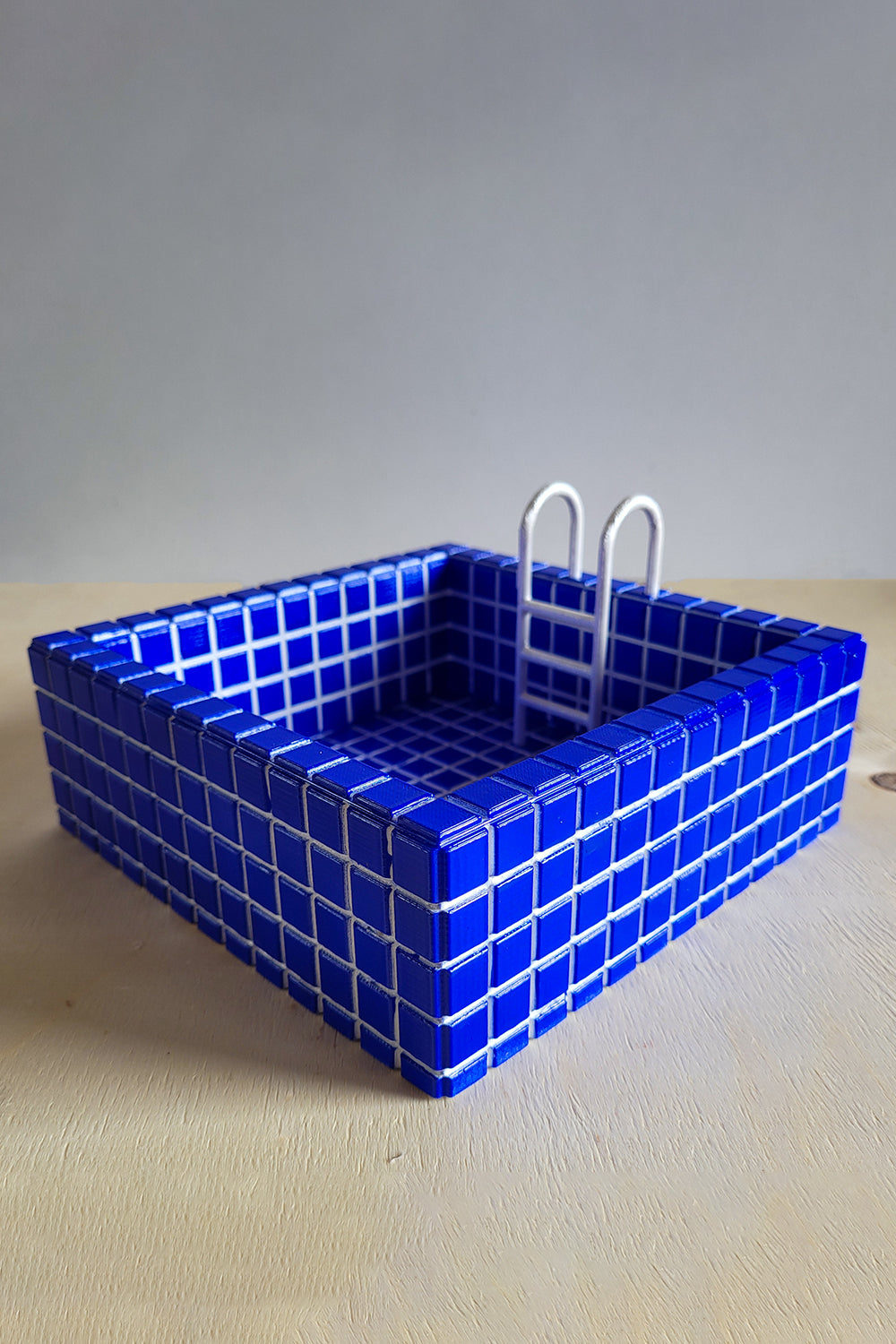 Küçük boyutuyla büyük bir etki yaratan bu mini havuz formundaki saksı, gerçek havuz karolarını andıran detaylı yüzeyi ve metal merdiven dokunuşuyla sıradanlıktan çok uzakta! 🏊♀️✨