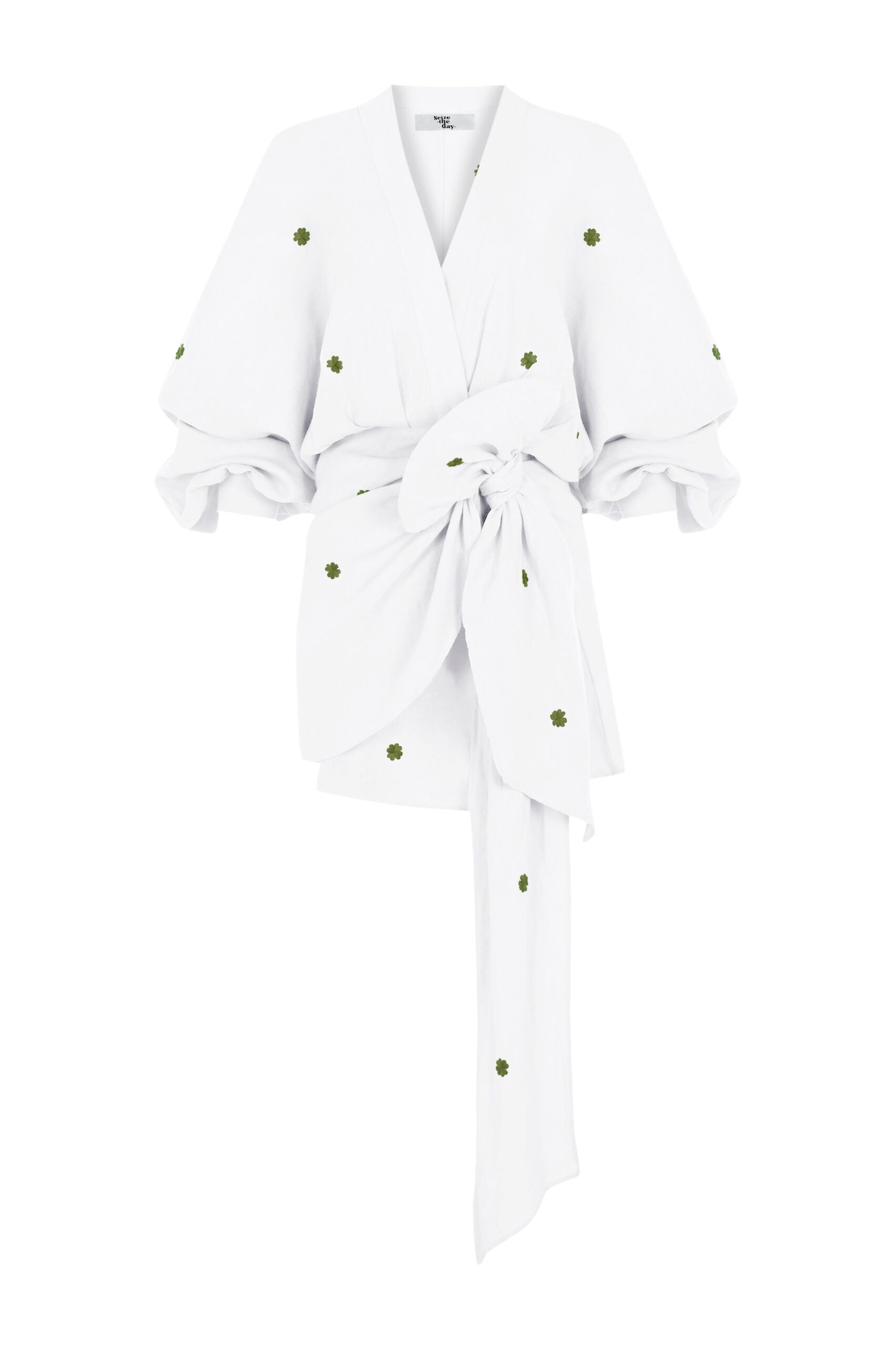 Lucky Dress, %100 ham keten kumaşı ve yonca desen nakış detaylarıyla tasarlanmıştır. Bağlamalı formu sayesinde farklı bedenlere uyum sağlayan esnek bir kullanım sunar. Hafif yapısıyla yaz kombinleri için uygundur.