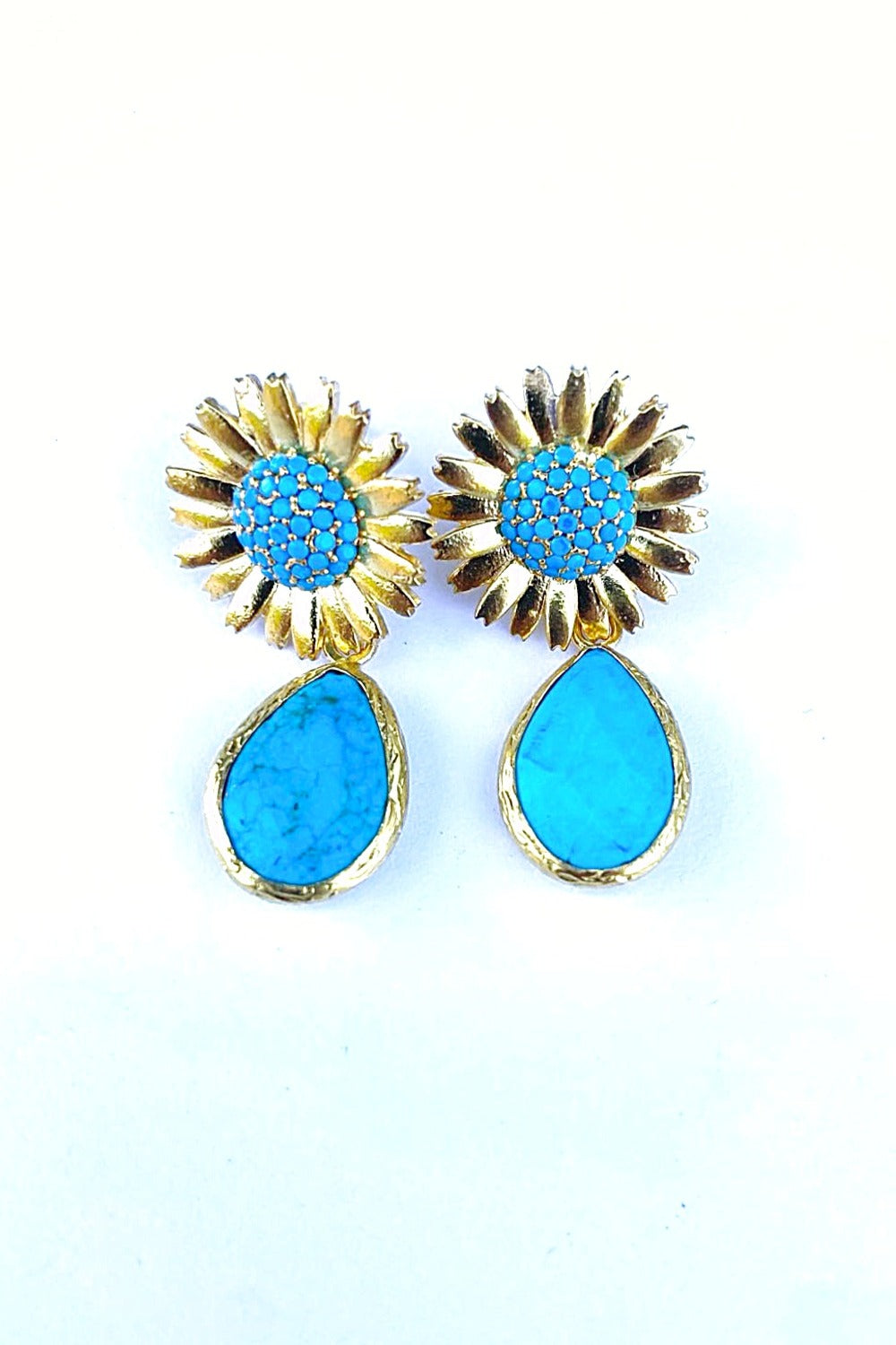 Turkuaz Taşlı Papatya Küpe