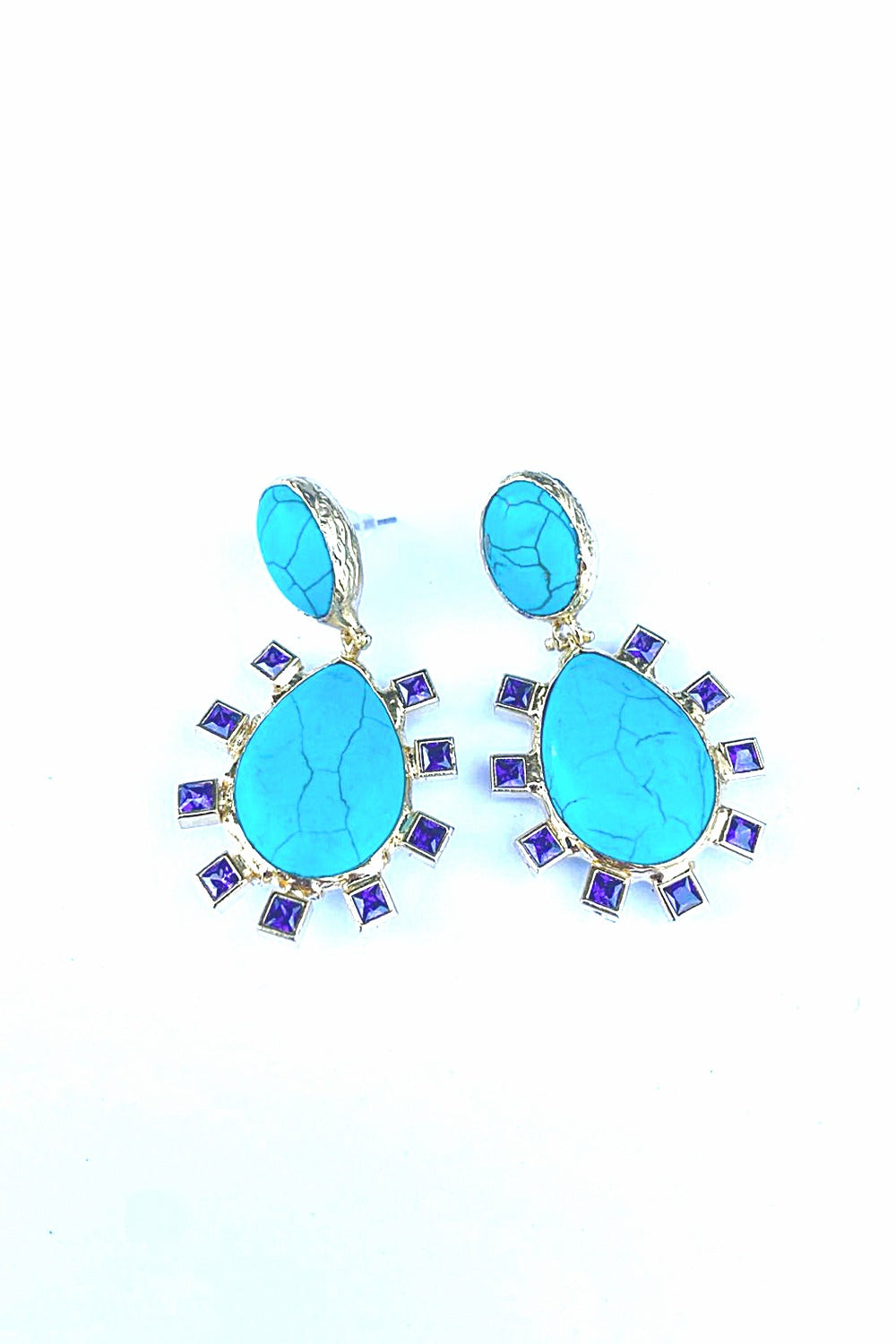 Turkuaz Mor Zirkon Detaylı Küpe