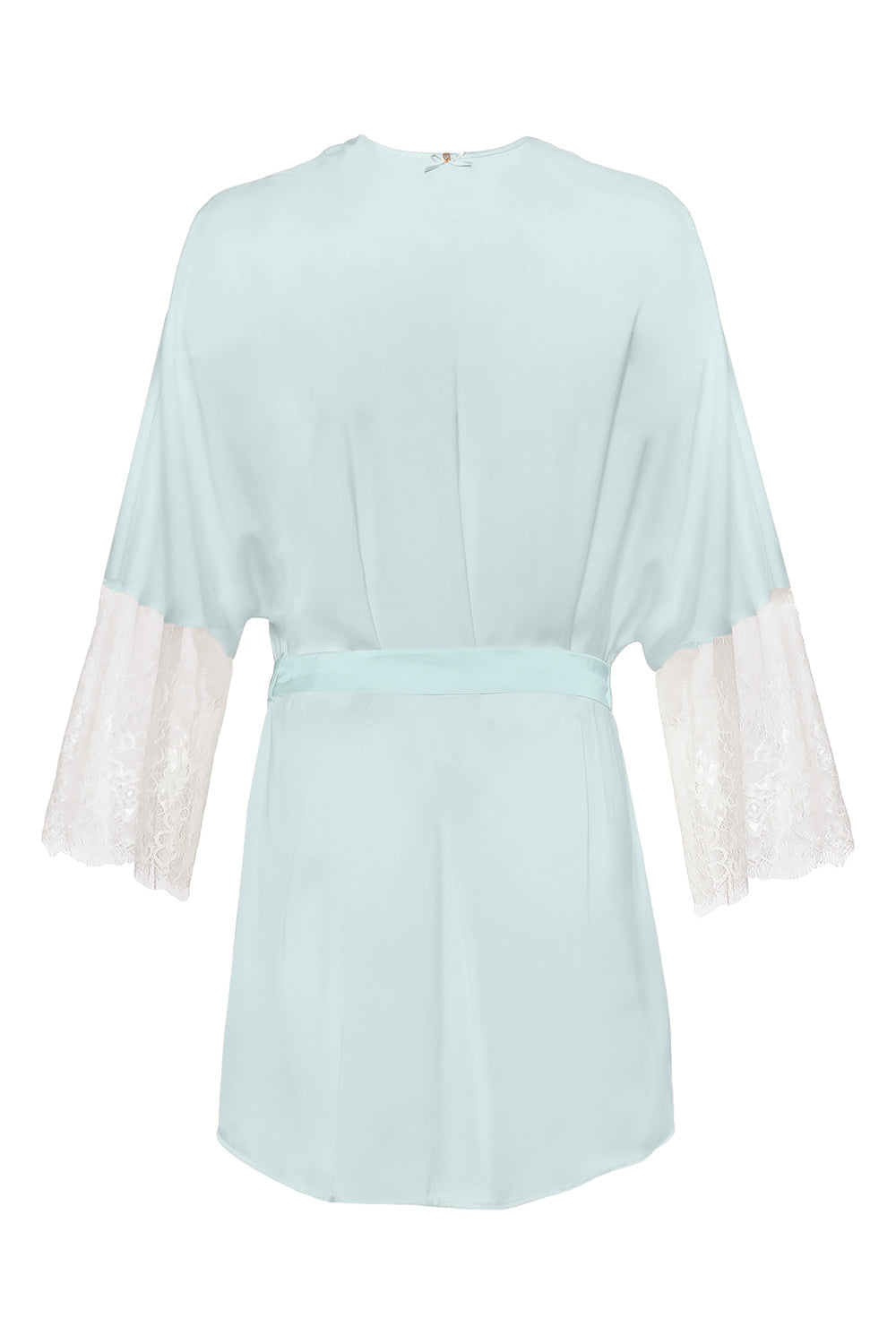 Anne Kısa İpek Saten Sabahlık - Açık Mavi