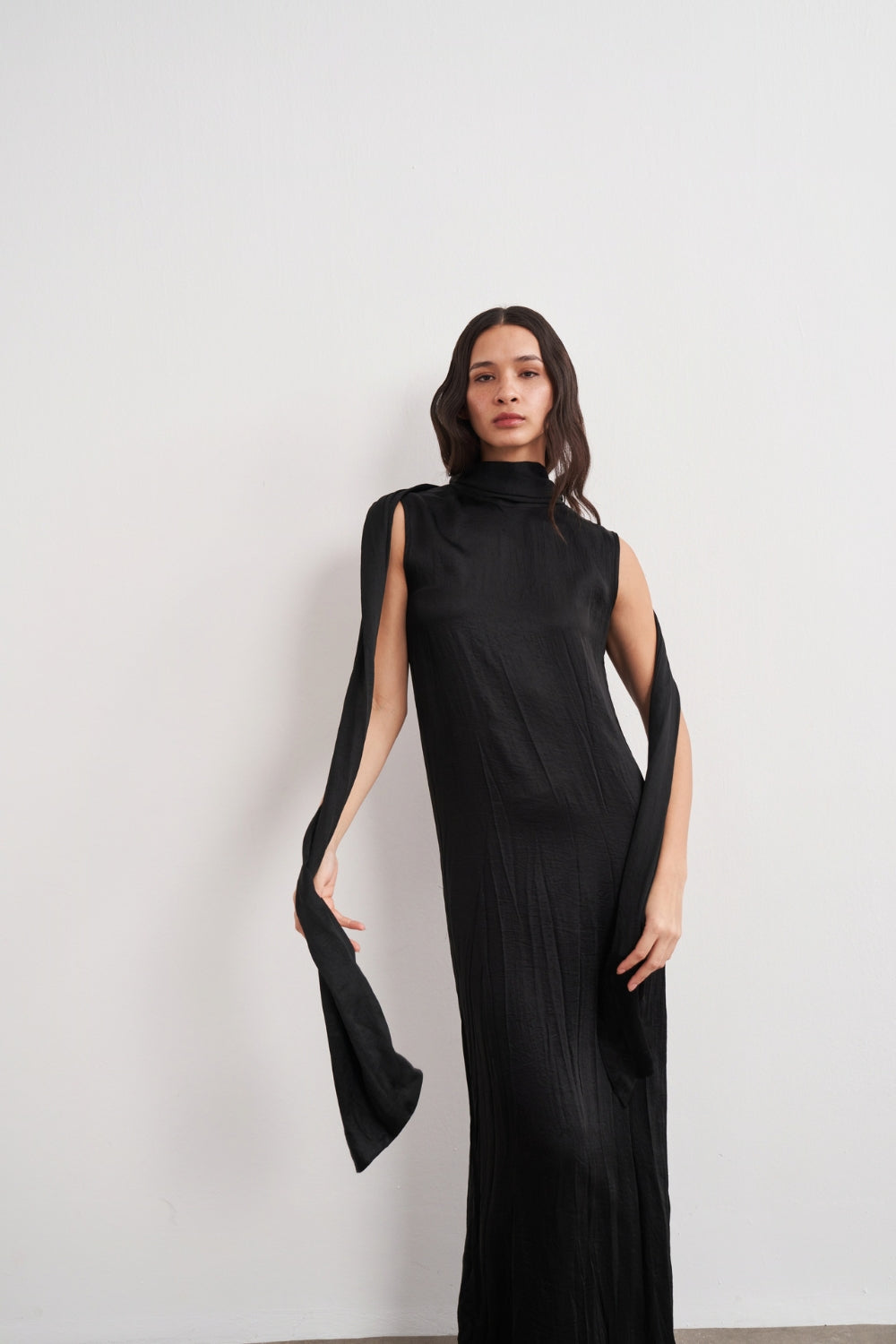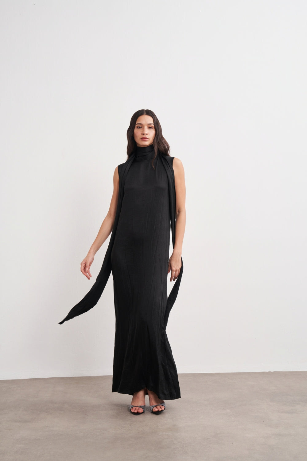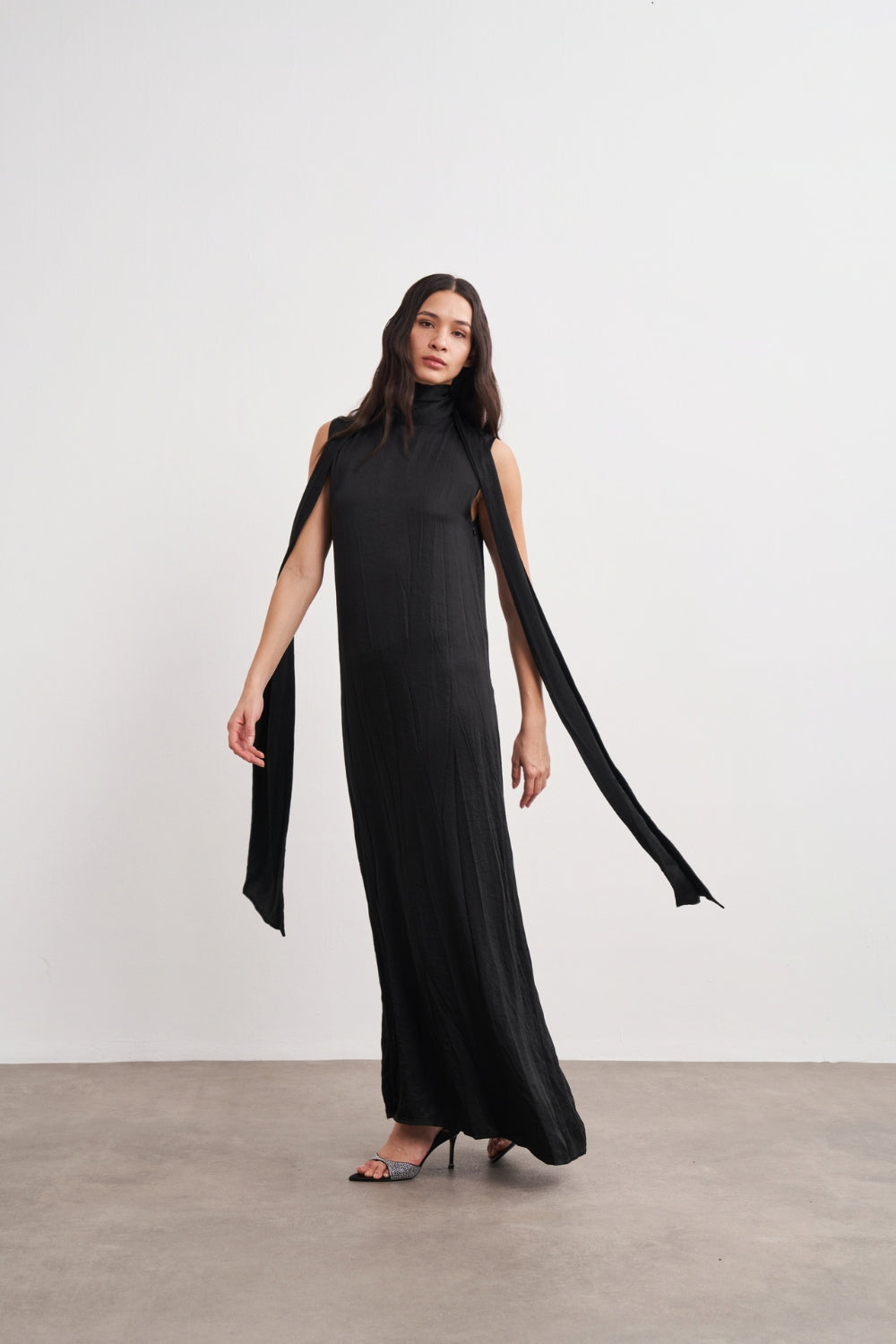 WINGCOTT Boyundan Bağlamalı ve Yırtmaç Detaylı Maxi Elbise