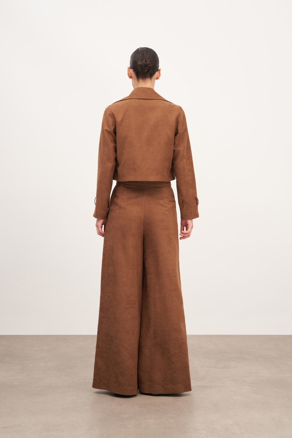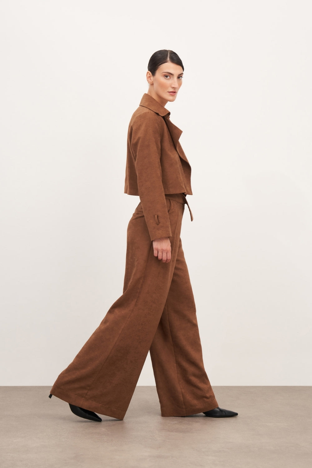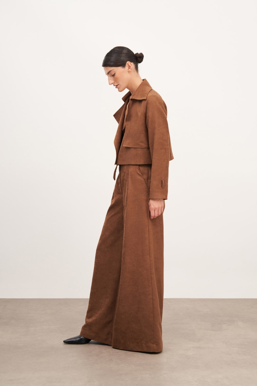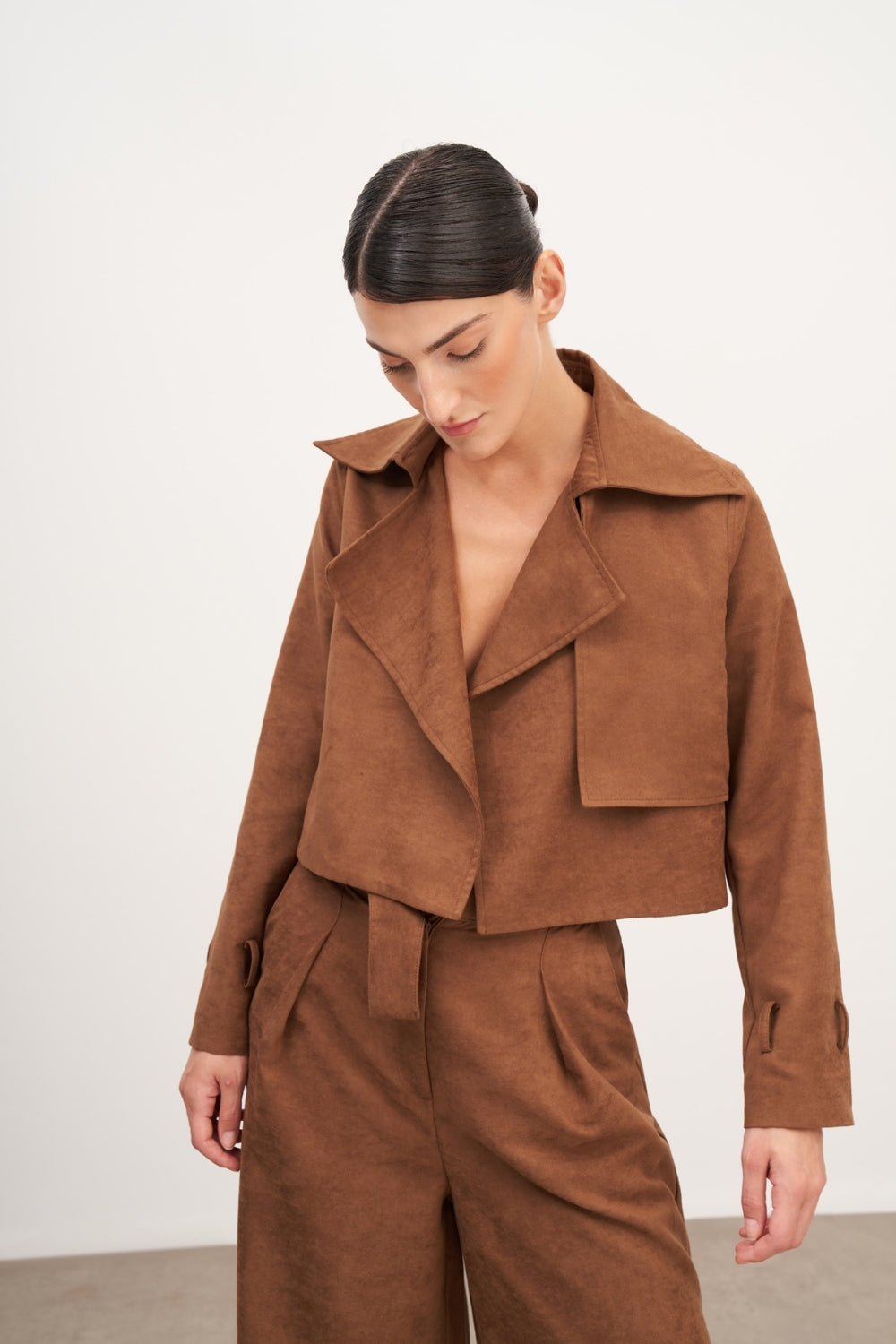 WINGCOTT Taba Süet Kemerli Mini Ceket