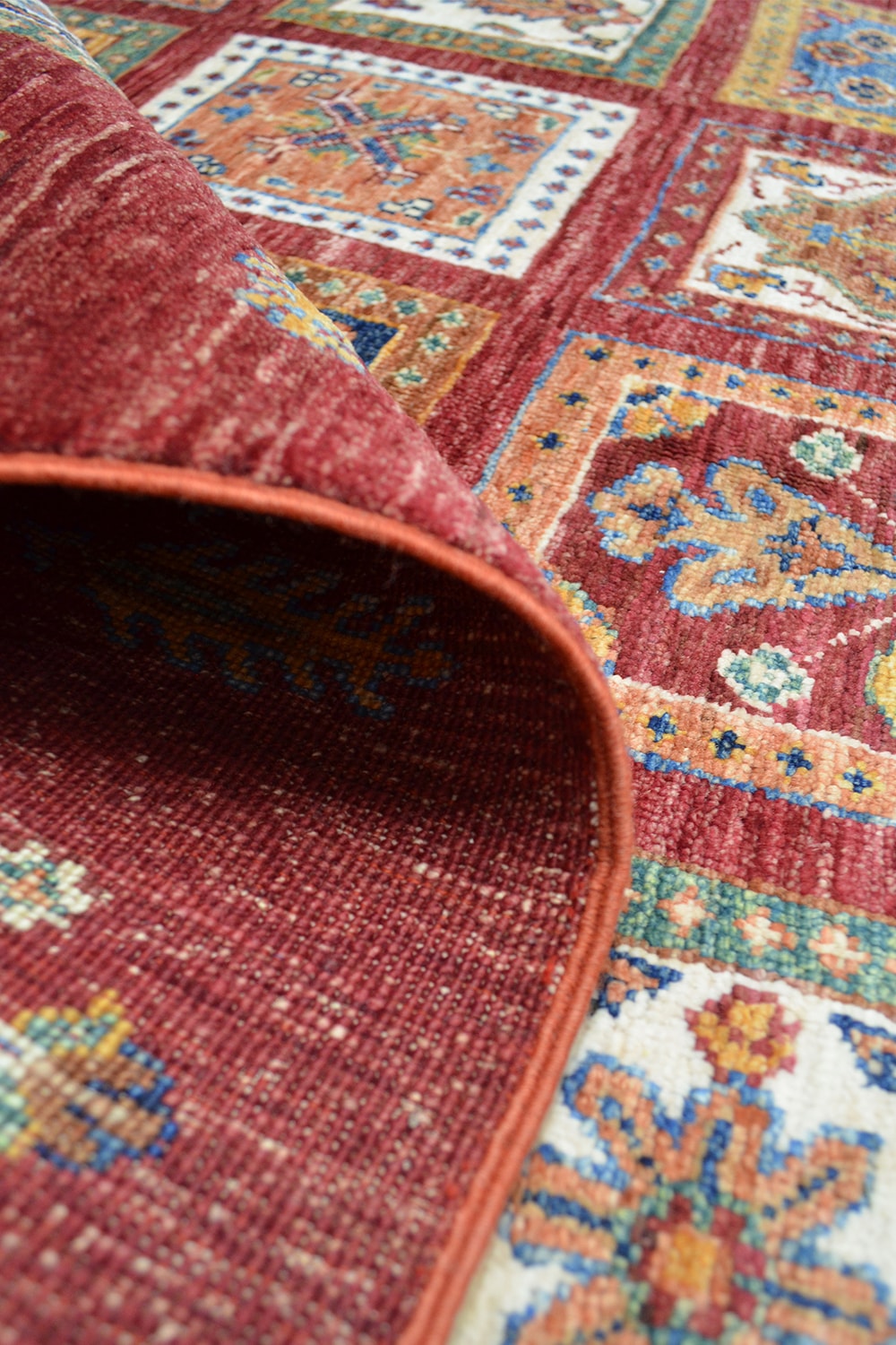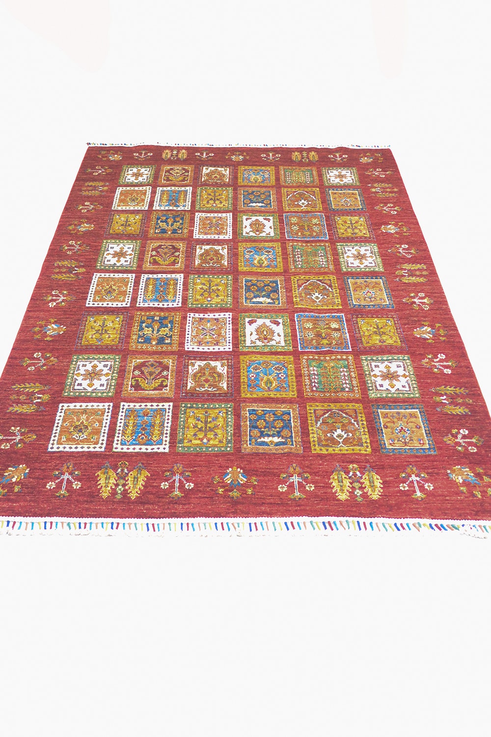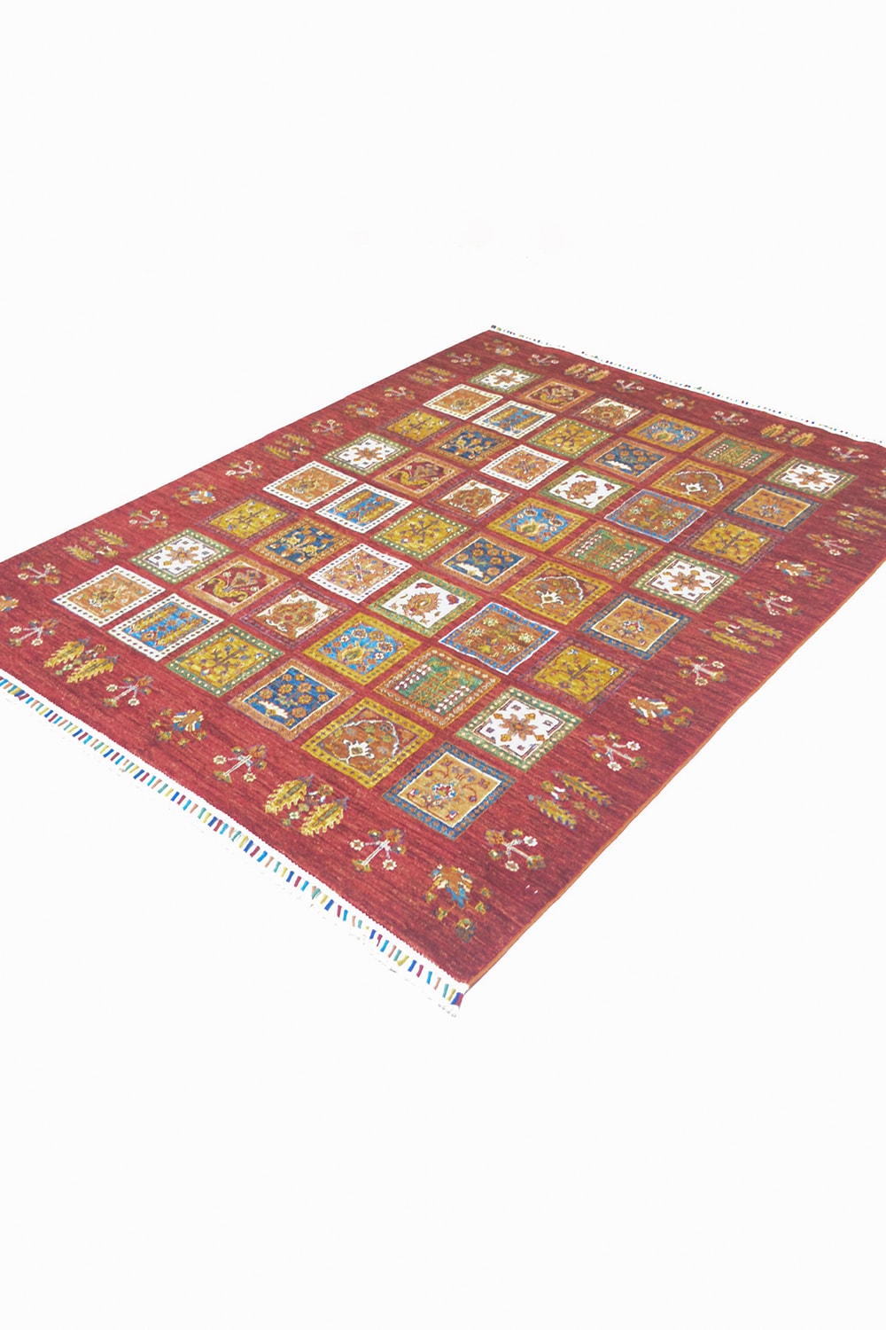 Masalsı desenleriyle öne çıkan bu Afgan Binbirgece halısı, 174x231 cm (4.02 m²) ölçülerindedir. %100 yün ipliklerle el dokuma tekniğiyle hazırlanmış olup, kırmızının güçlü tonu halıya ihtişamlı bir görünüm kazandırır.