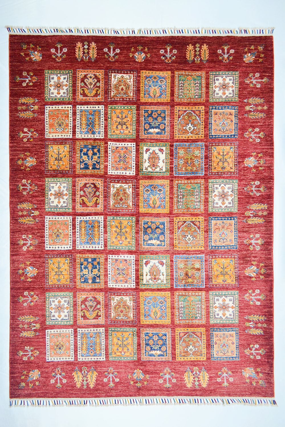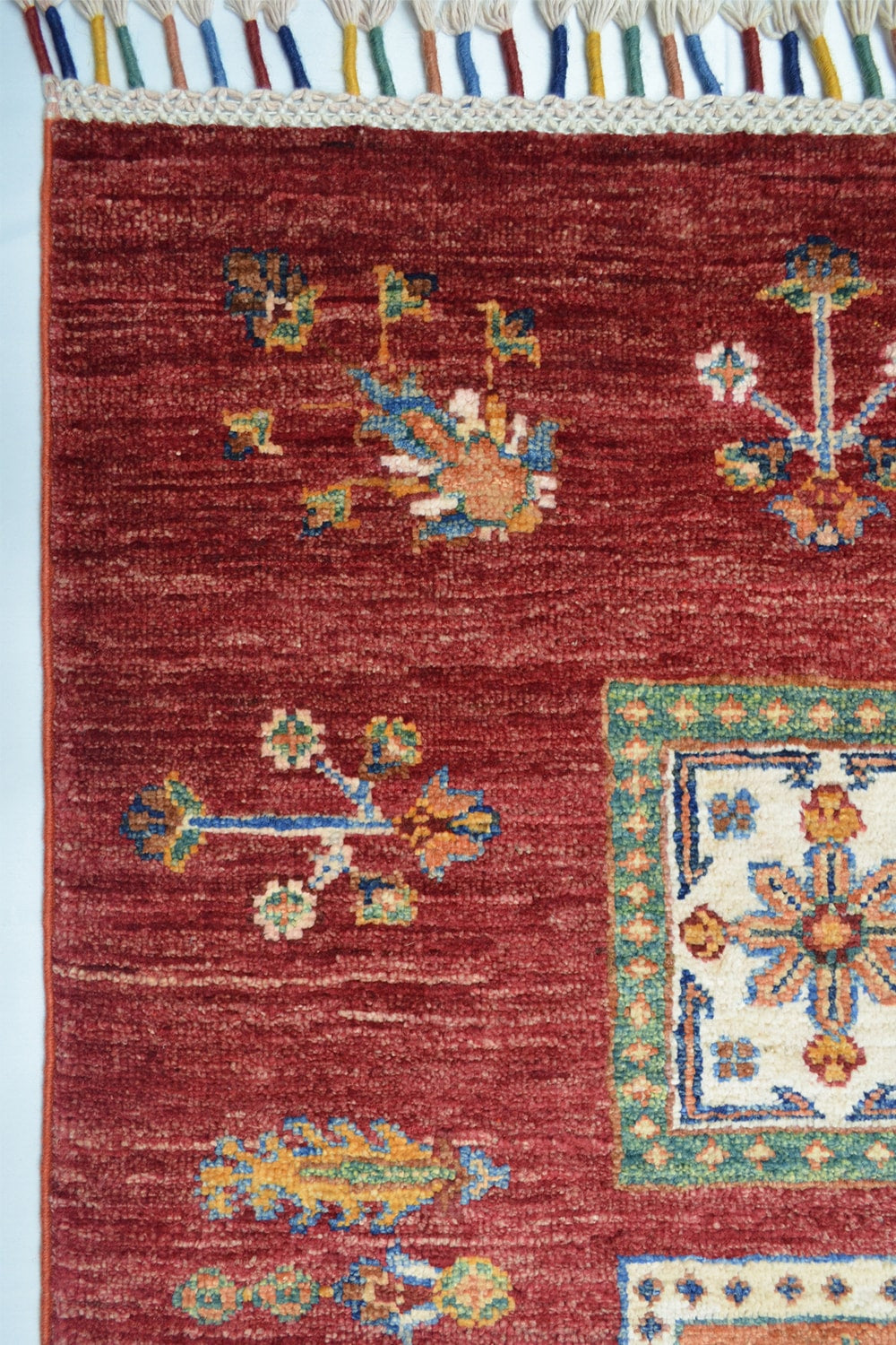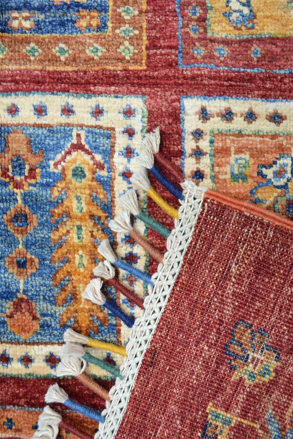 Masalsı desenleriyle öne çıkan bu Afgan Binbirgece halısı, 174x231 cm (4.02 m²) ölçülerindedir. %100 yün ipliklerle el dokuma tekniğiyle hazırlanmış olup, kırmızının güçlü tonu halıya ihtişamlı bir görünüm kazandırır.