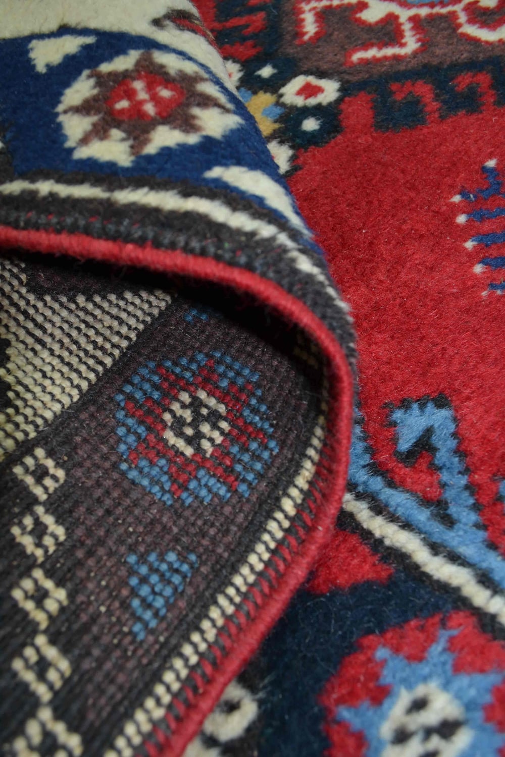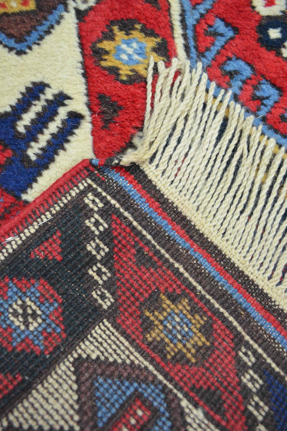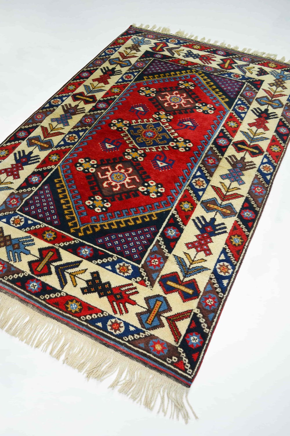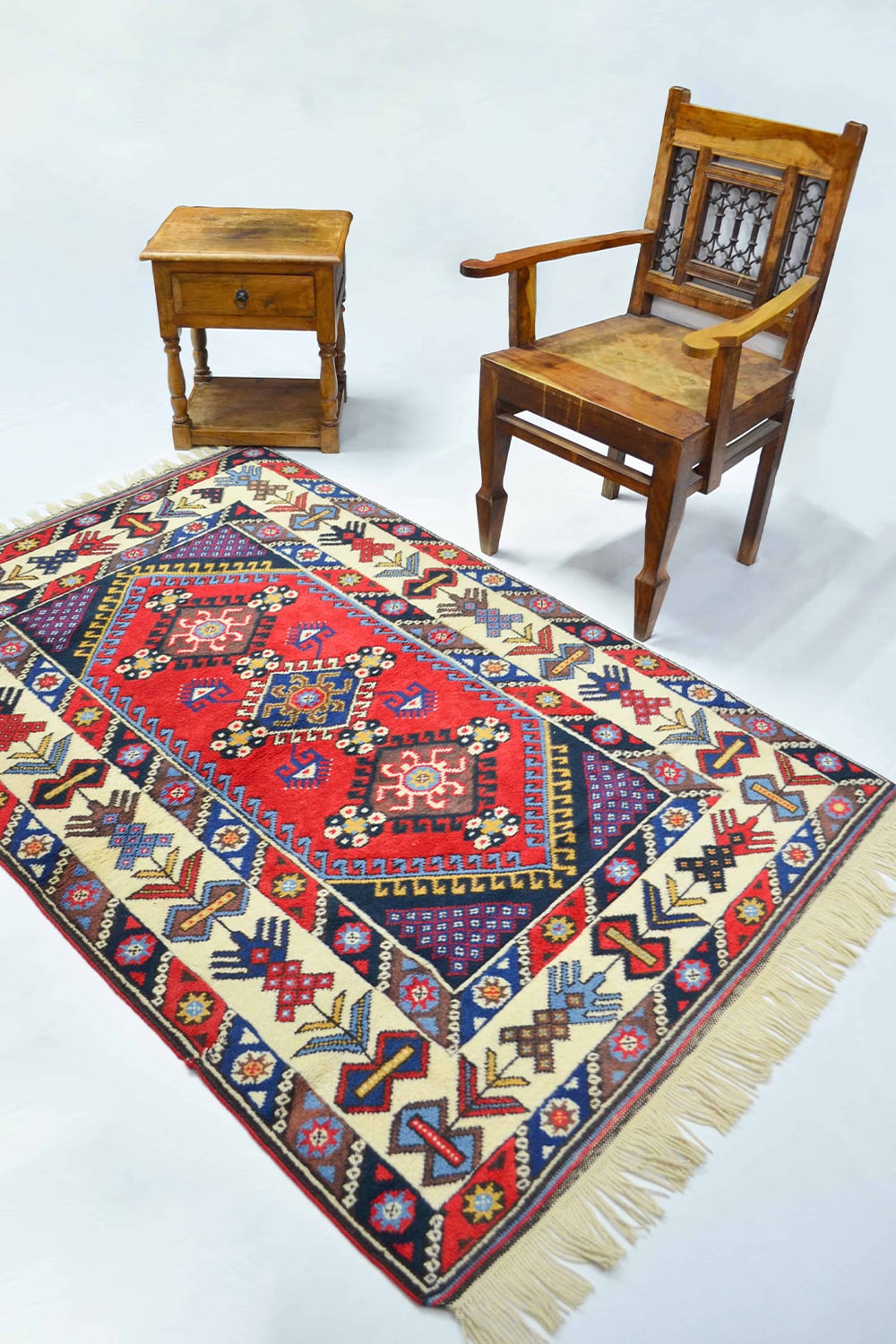 Antalya'nın köklü halıcılık geleneğinden gelen bu Döşemealtı halısı, yün saçak üzerine Kirman yünü kullanılarak dokunmuştur. Doğal kökboyalarla renklendirilen bu el dokuma halı, canlı kırmızı tonuyla dikkat çeker ve bulunduğu ortama sıcaklık katar.
