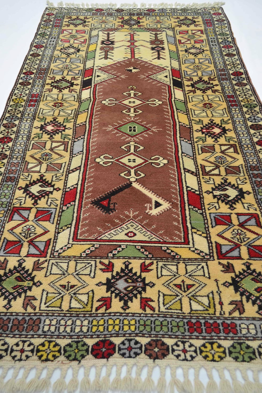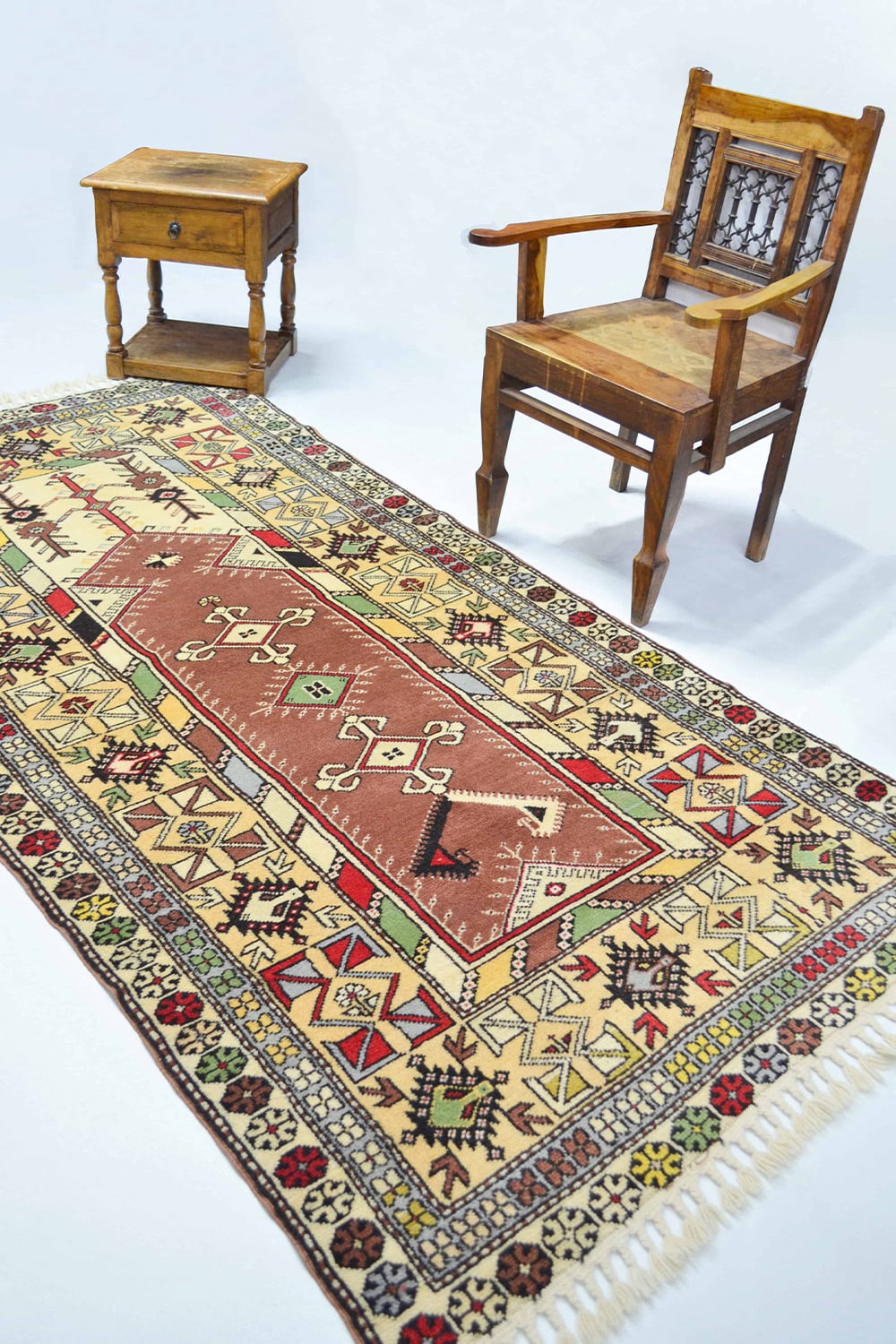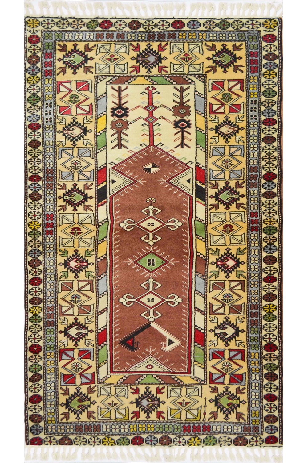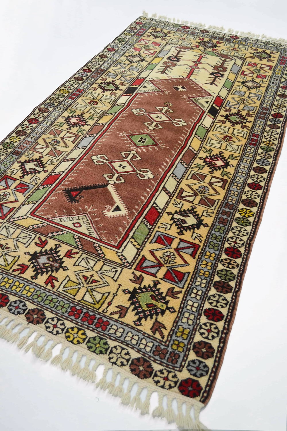 El Dokuma Bej Ve Kiremit Renk Bozalan Milas Halısı 120x233 Cm