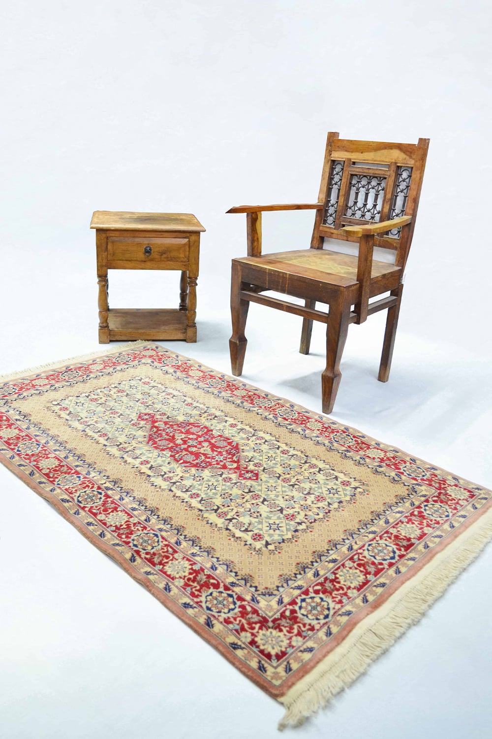 Bej zemin üzerine işlenen kırmızı desenler, klasik ve dengeli bir görünüm sunarak bulunduğu mekâna sıcak bir karakter katar. 93x150 cm ölçüsüyle hem küçük salonlar hem de özel alanlar için dekoratif bir seçenektir.