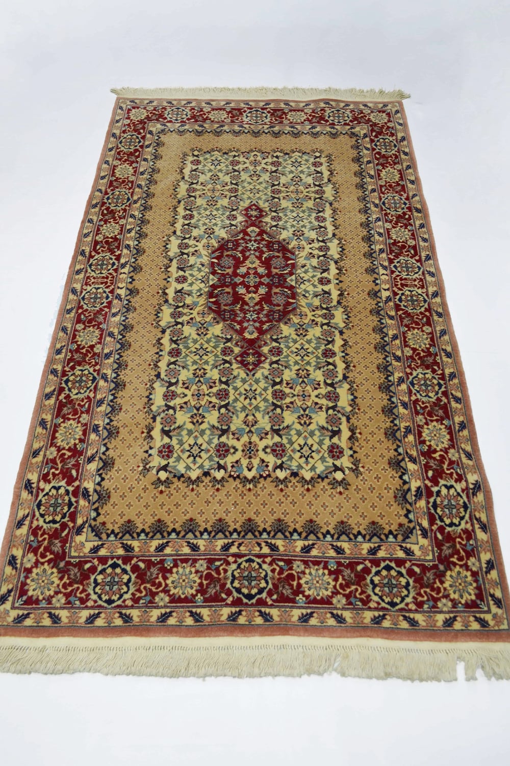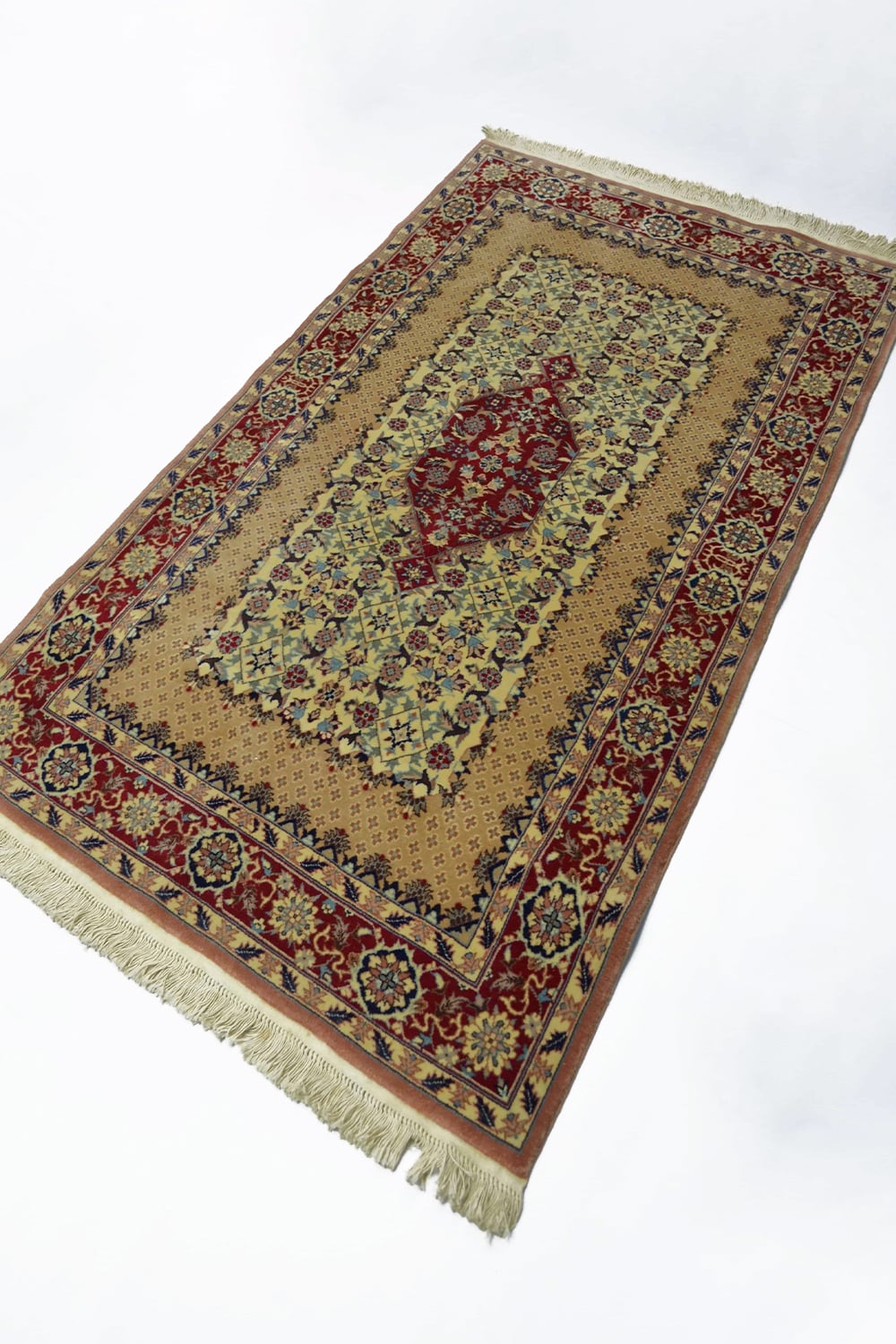 El Dokuma Bej Ve Kırmızı Renk İran Saruk Halısı 93x150 Cm