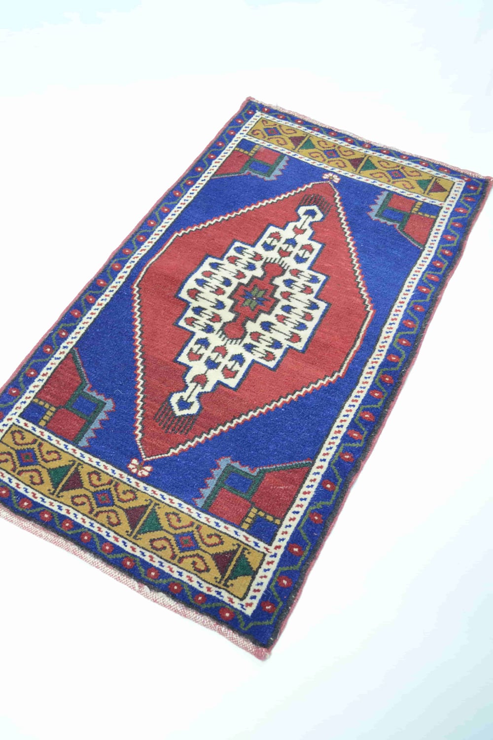 El Dokuma Bordo Ve Lacivert Renk Taşpınar Halısı 59x98 Cm