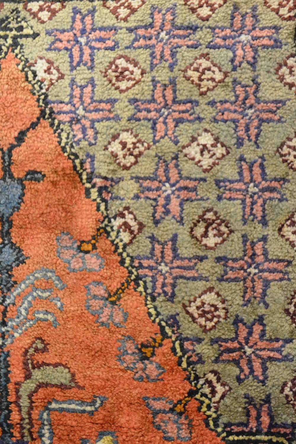 Bu el dokuma Kayseri tarzı Türk halısı, zarafet ve geleneği bir araya getiren göz alıcı bir tasarıma sahiptir. 93x130 cm (1.2 m²) ölçüsündeki bu halı, sıcak turuncu ve bej tonlarında çiçek motifleri ve seccade ilhamlı desenleriyle dikkat çeker. İnce detaylarla işlenmiş desenleri ve yumuşak viskon dokusu, mekânınıza lüks bir hava katarken, klasik ve modern dekorlarla mükemmel uyum sağlar.