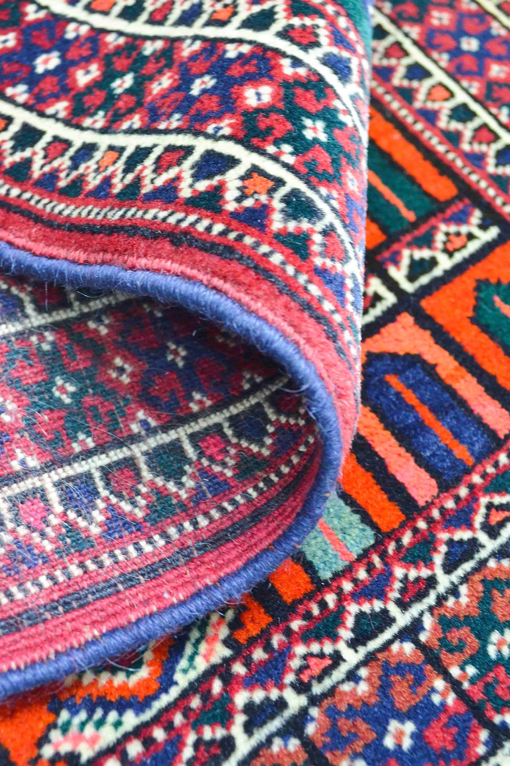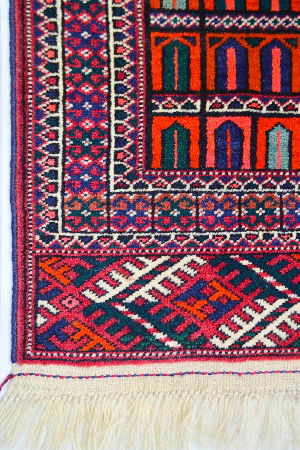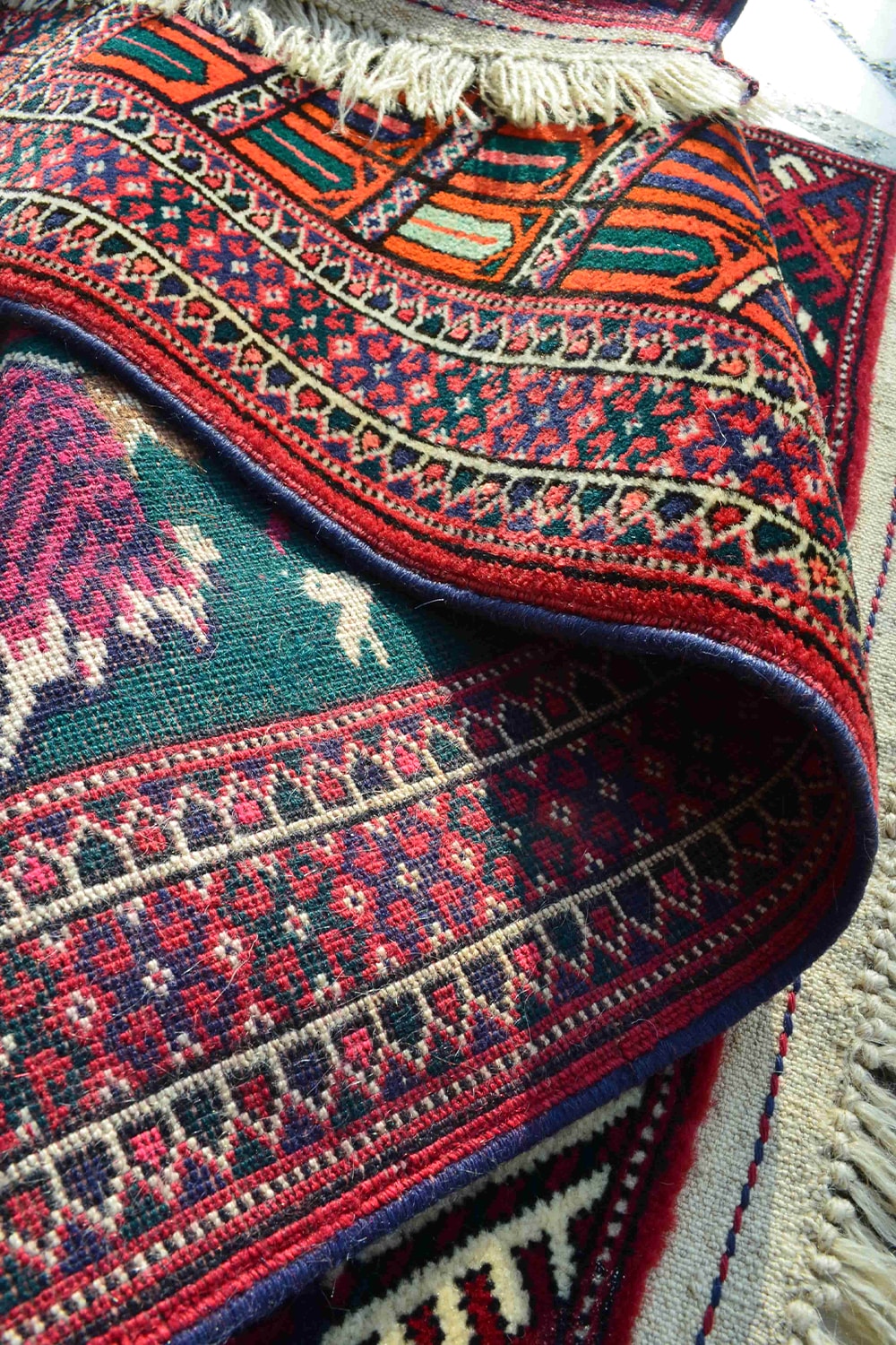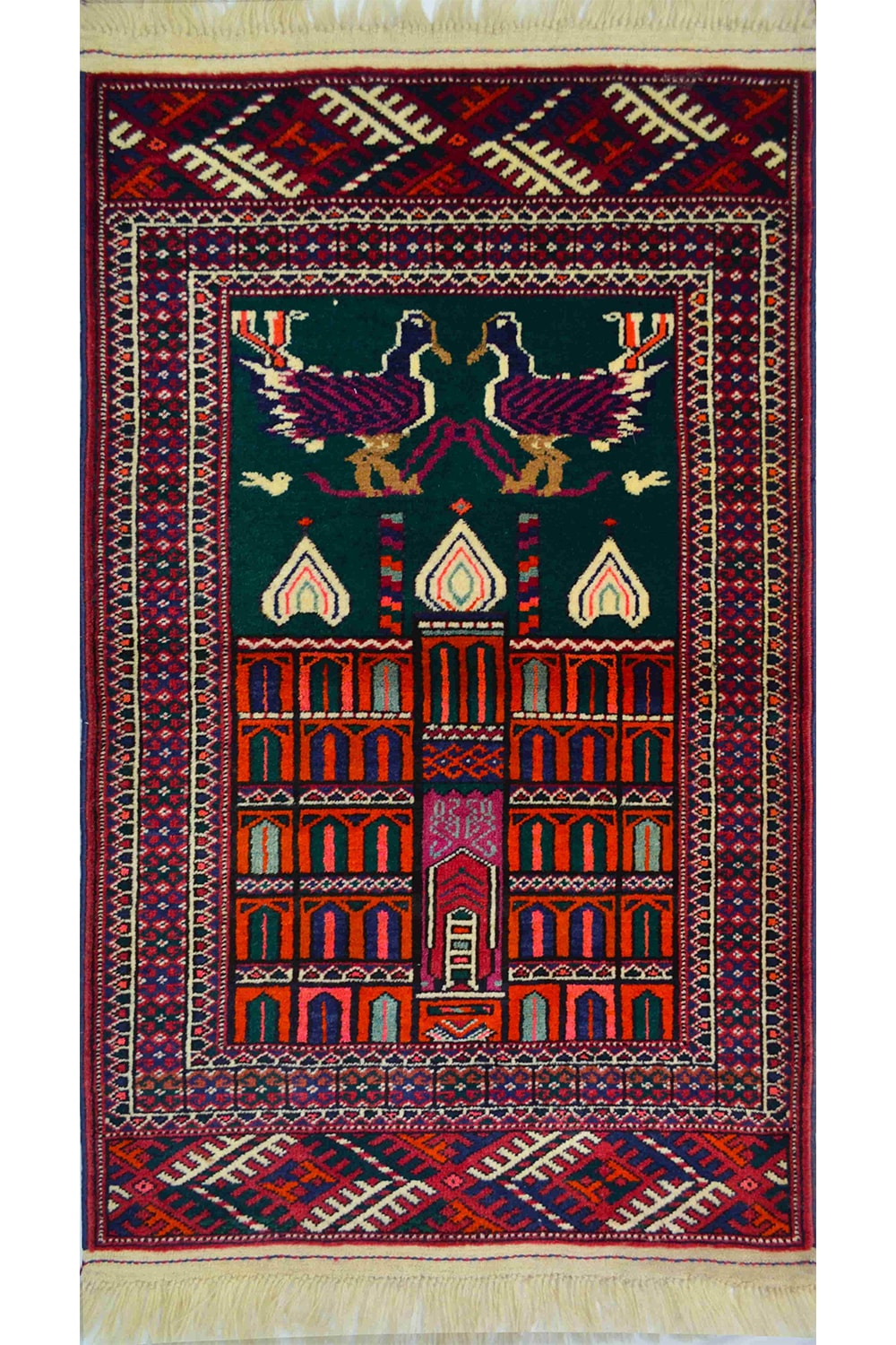 Bu özel Türkmen halısı, geleneksel el dokuma teknikleriyle üretilmiştir ve güvercin betimlemesi ile dikkat çeker. Yün malzeme kullanılarak dokunan halı, bordo, krem ve turuncu renklerinin zarif uyumu ile göz alıcı bir tasarım sunar. 60x100 cm (0.6 m²) ölçüsüyle hem şıklık hem de pratik kullanım sağlar. Dayanıklı yapısı ve el işçiliği ile uzun ömürlü bir kullanım sunar.